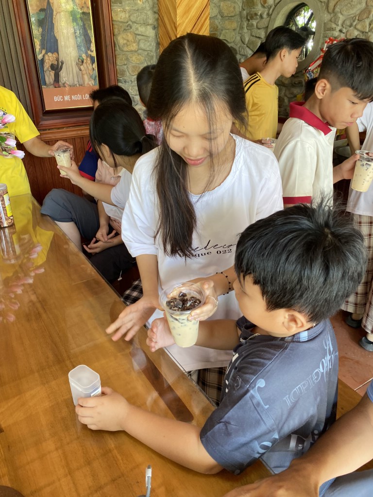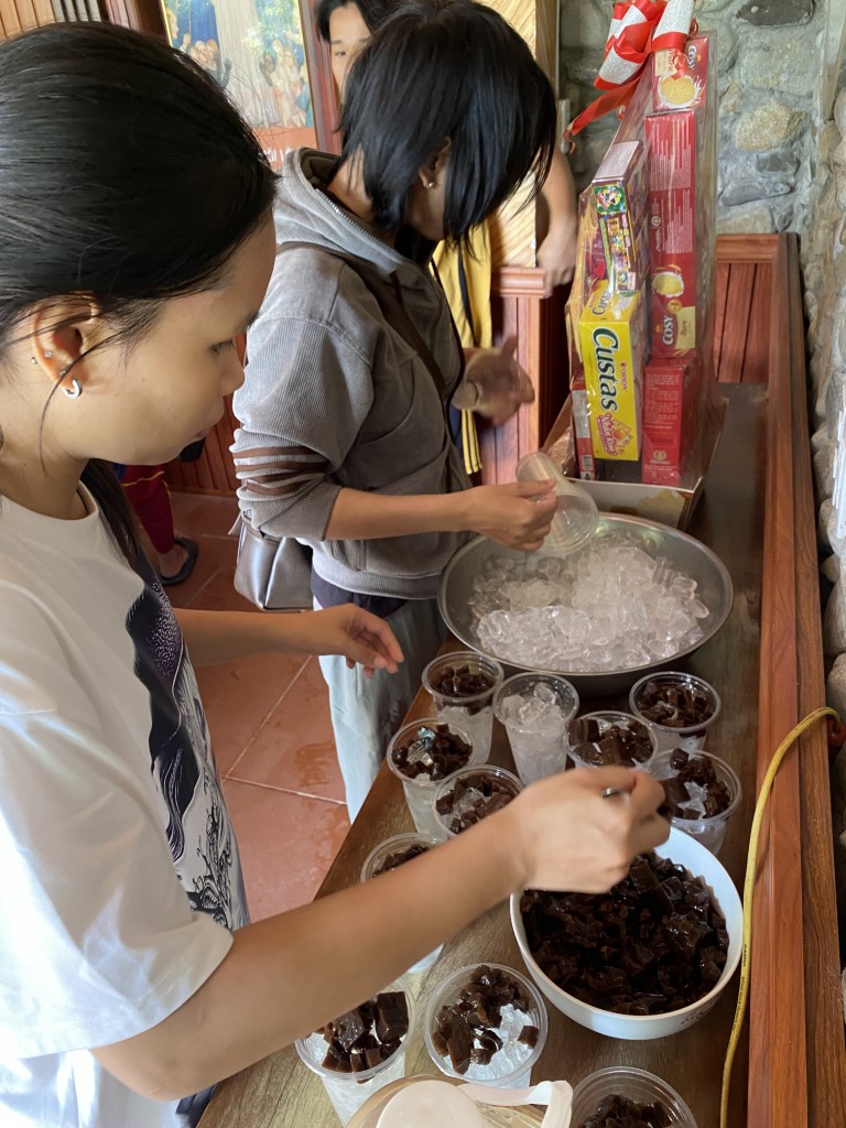 When we arrived, the children helped our team stack the provisions on the big table next to their gardens. We even brought along sweet gelatin dessert cups as a special treat!
