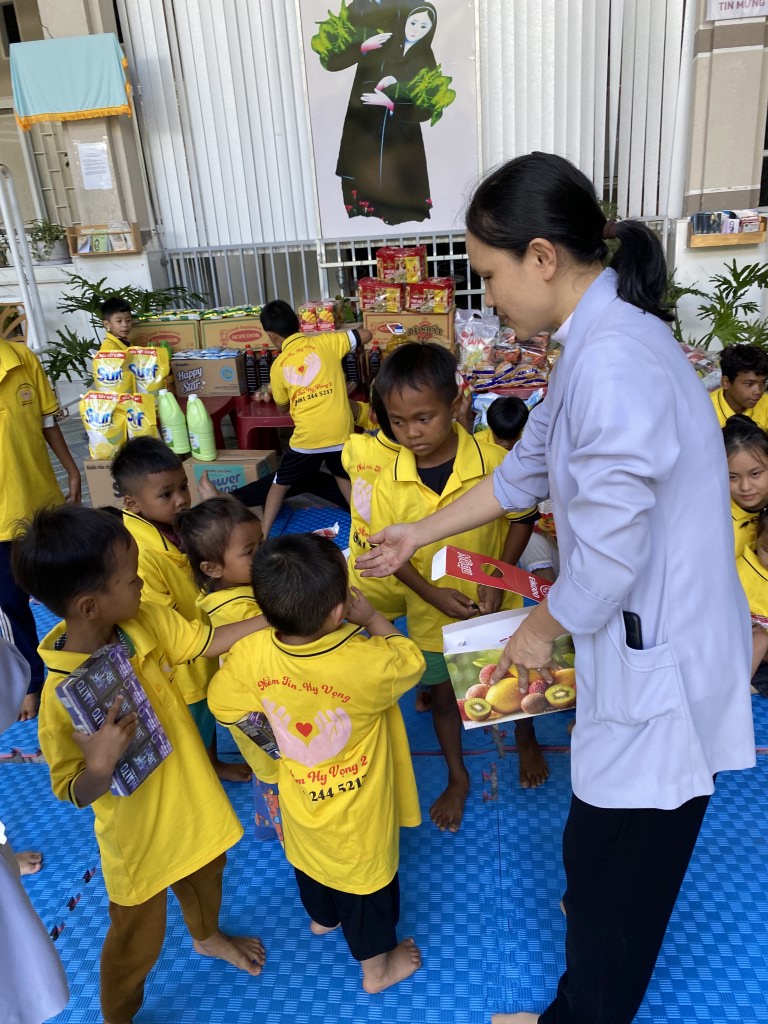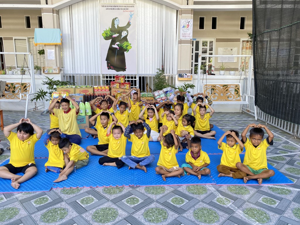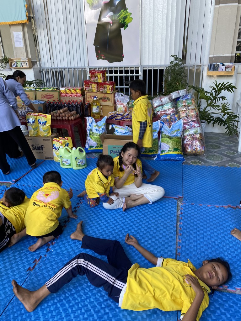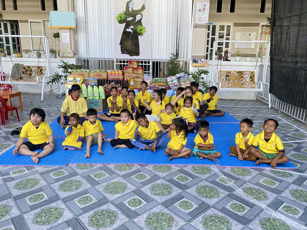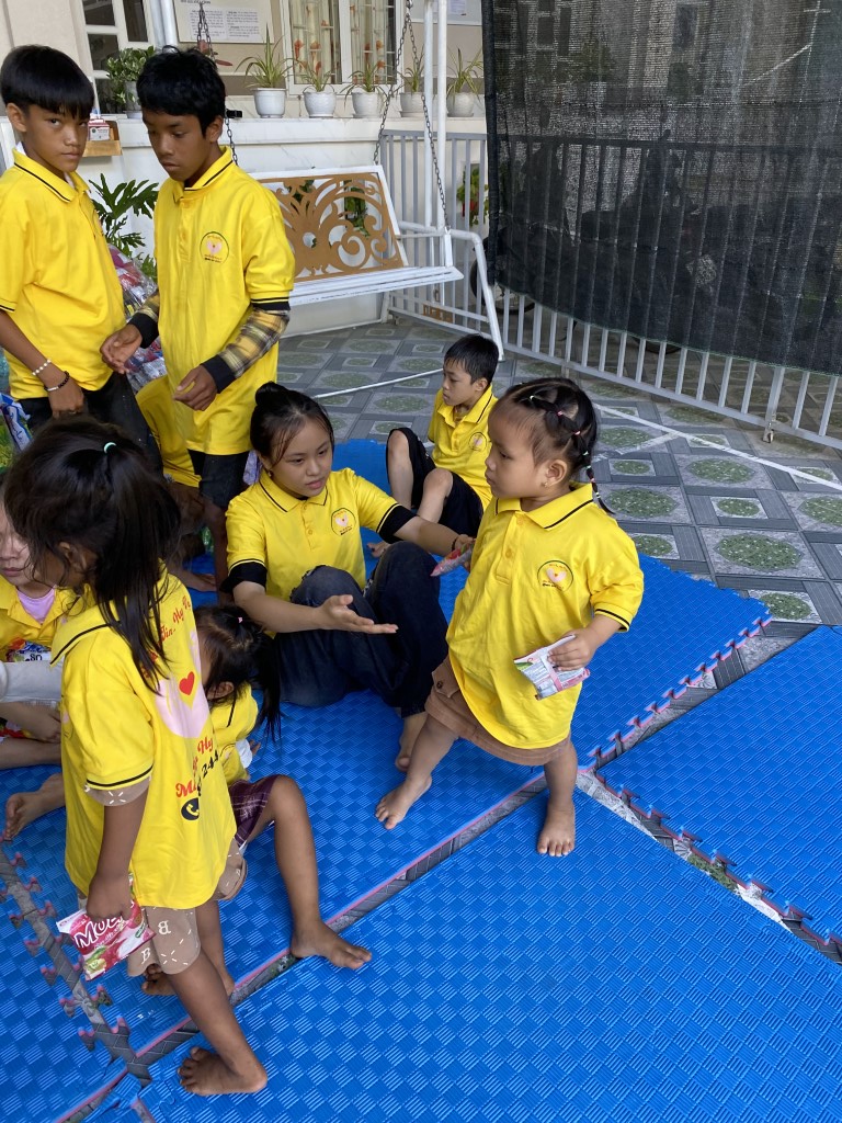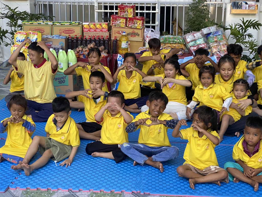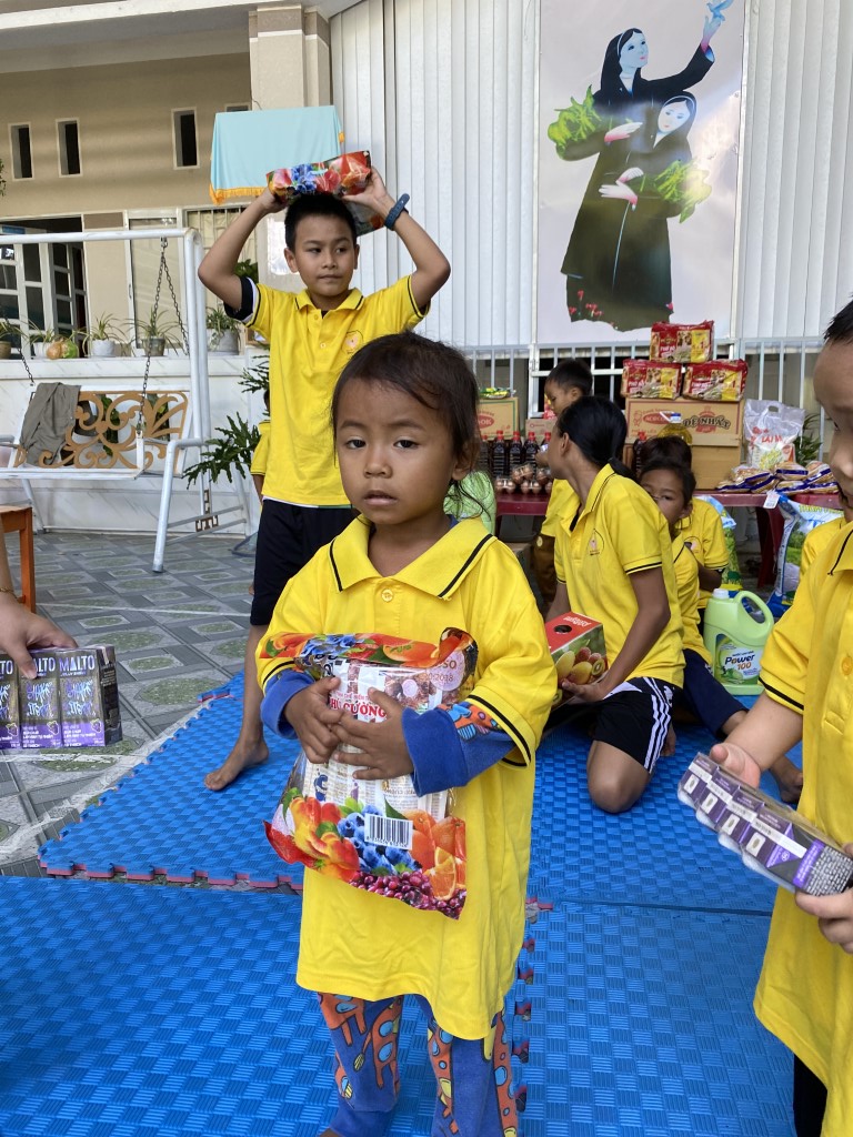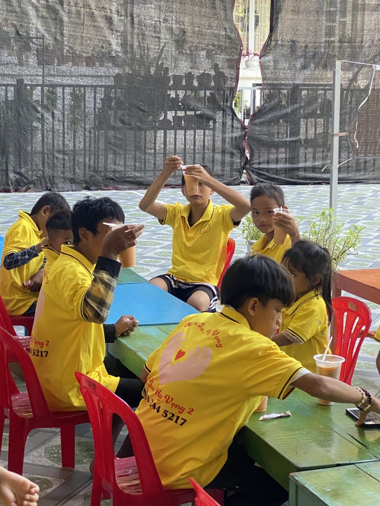 Upon arrival, we were warmly greeted by the children happily playing in the courtyard. Our team unloaded everything, including bags of rice, milk, noodles, fish sauce, sweet rice, eggs, lots of snacks, floor soap, dish soap, and insect spray. To add to the fun, we even prepared boba tea drinks for everyone. It was truly a wonderful day!