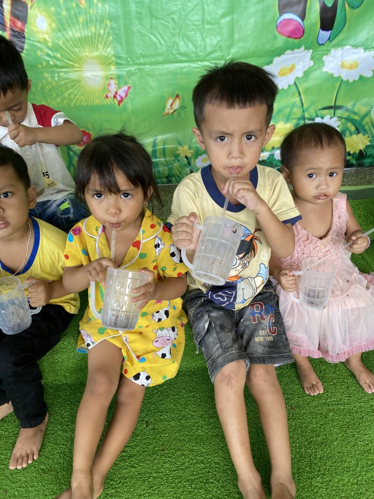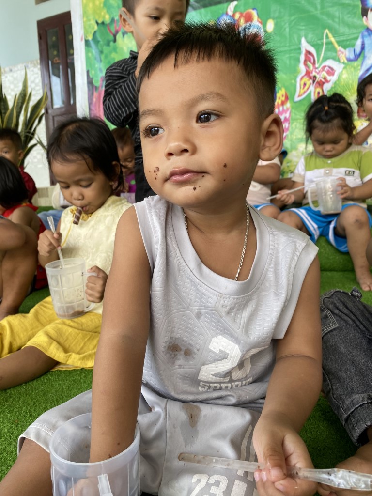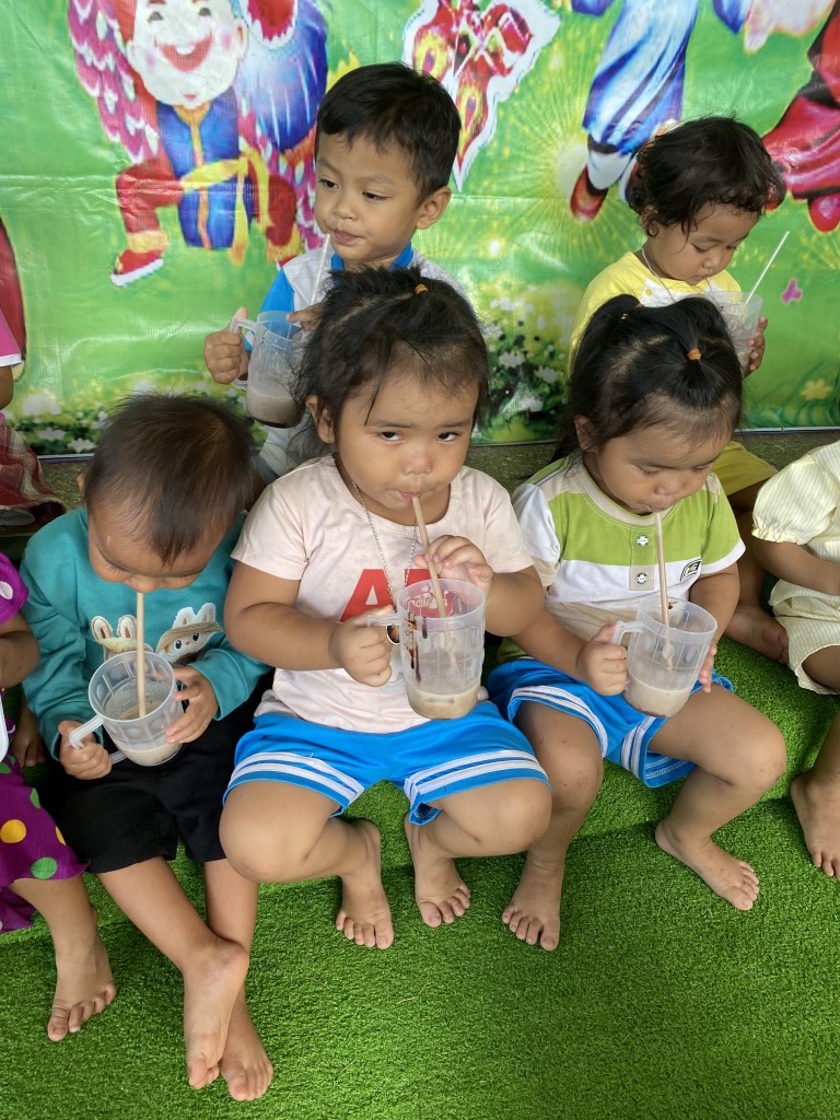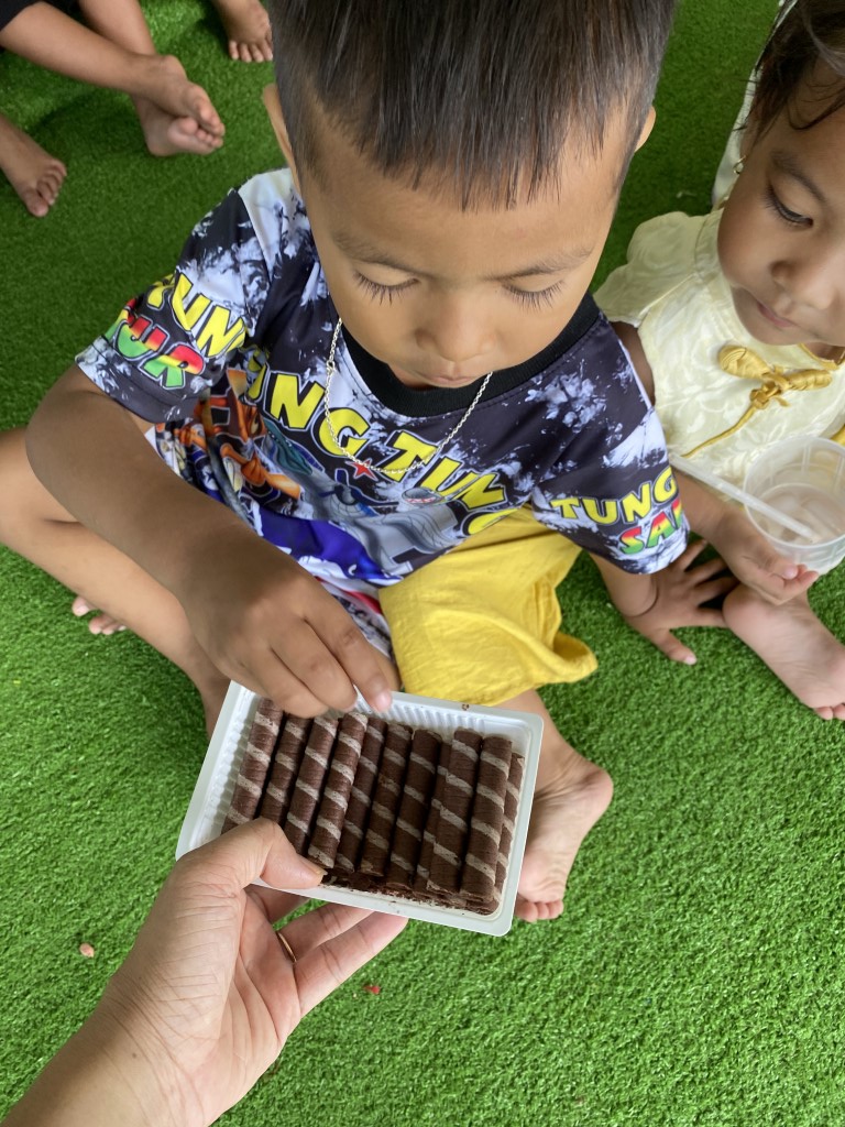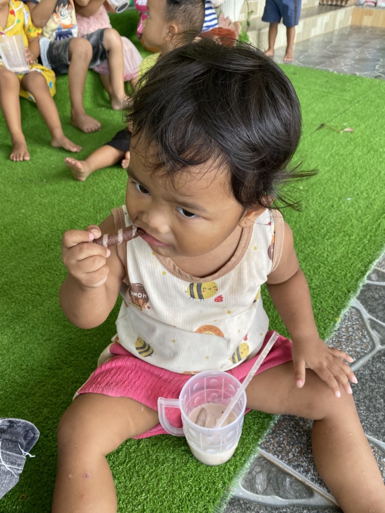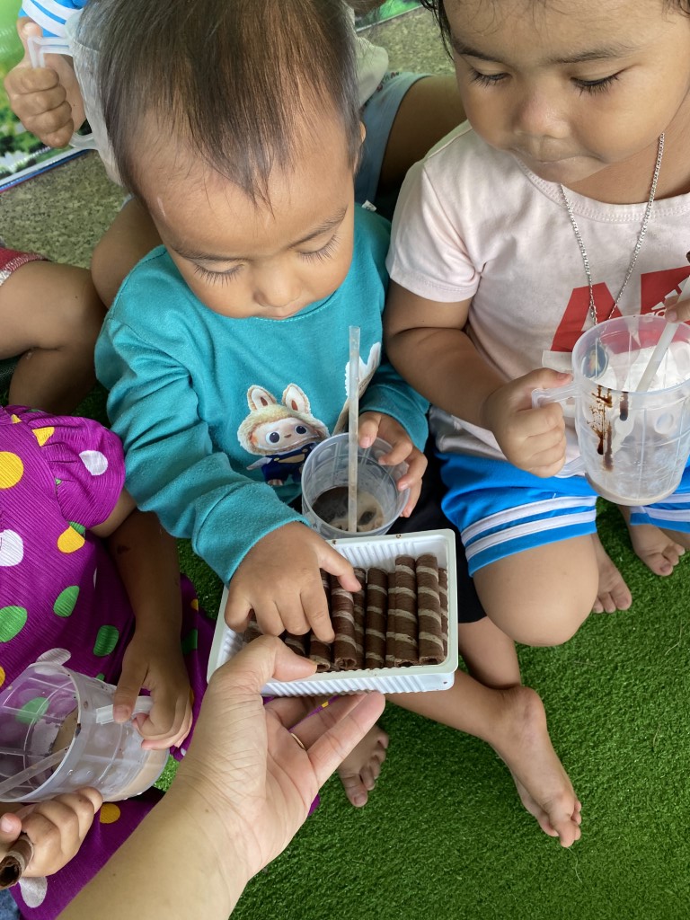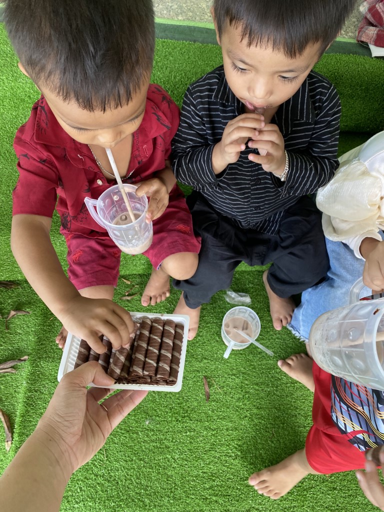This month’s delivery was packed with necessities, including: storage bins, sausages, soup, seasonings, cooking oil, yogurt, milk, cleaning products, and eggs. For a fun surprise, we whipped up some chocolate milk and cookies for all the children. Their joyful reactions made it all worthwhile!