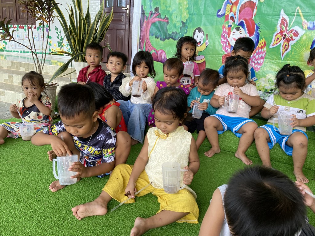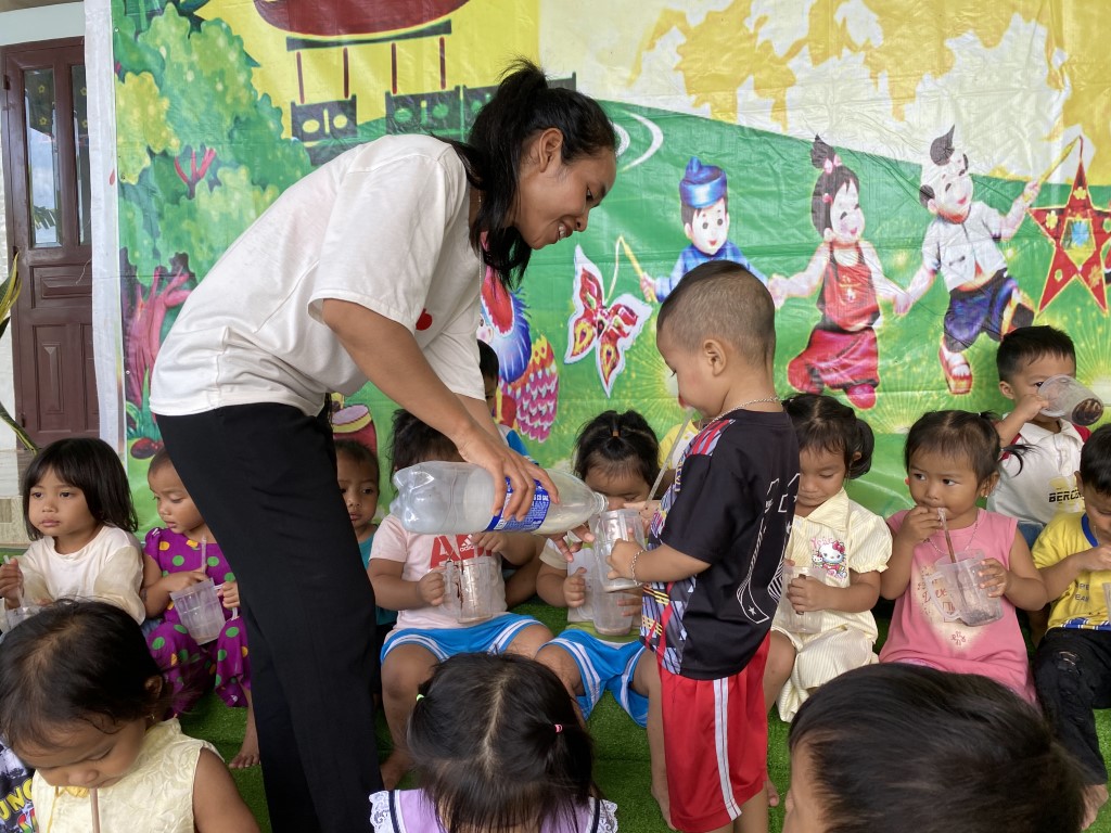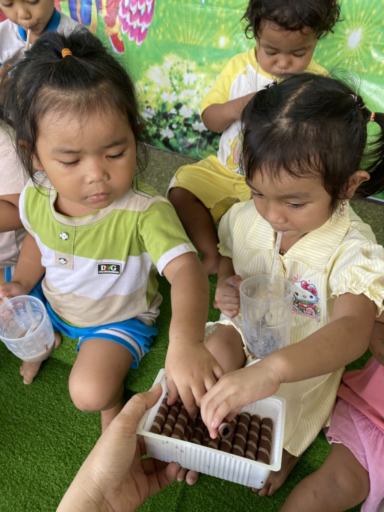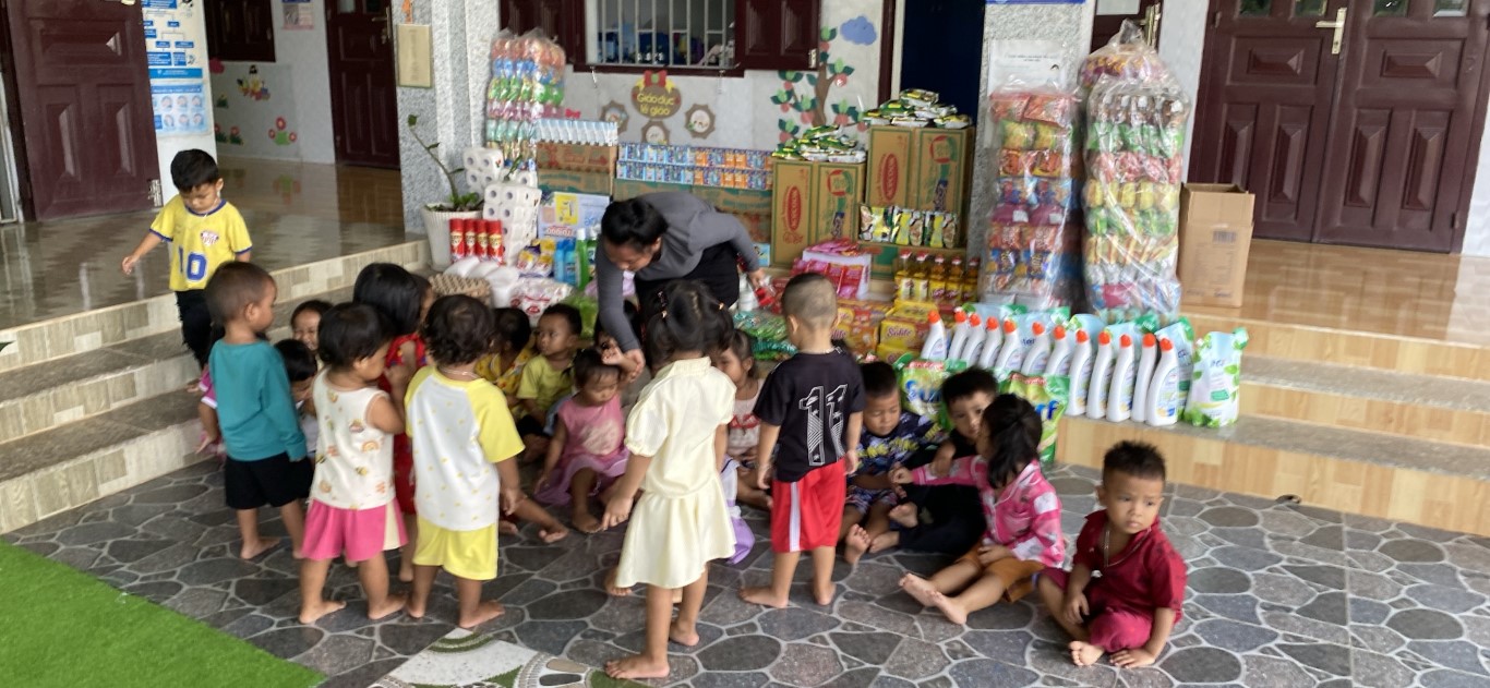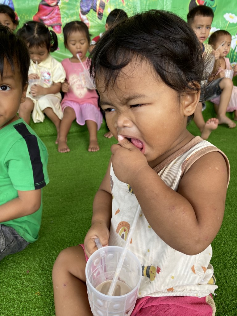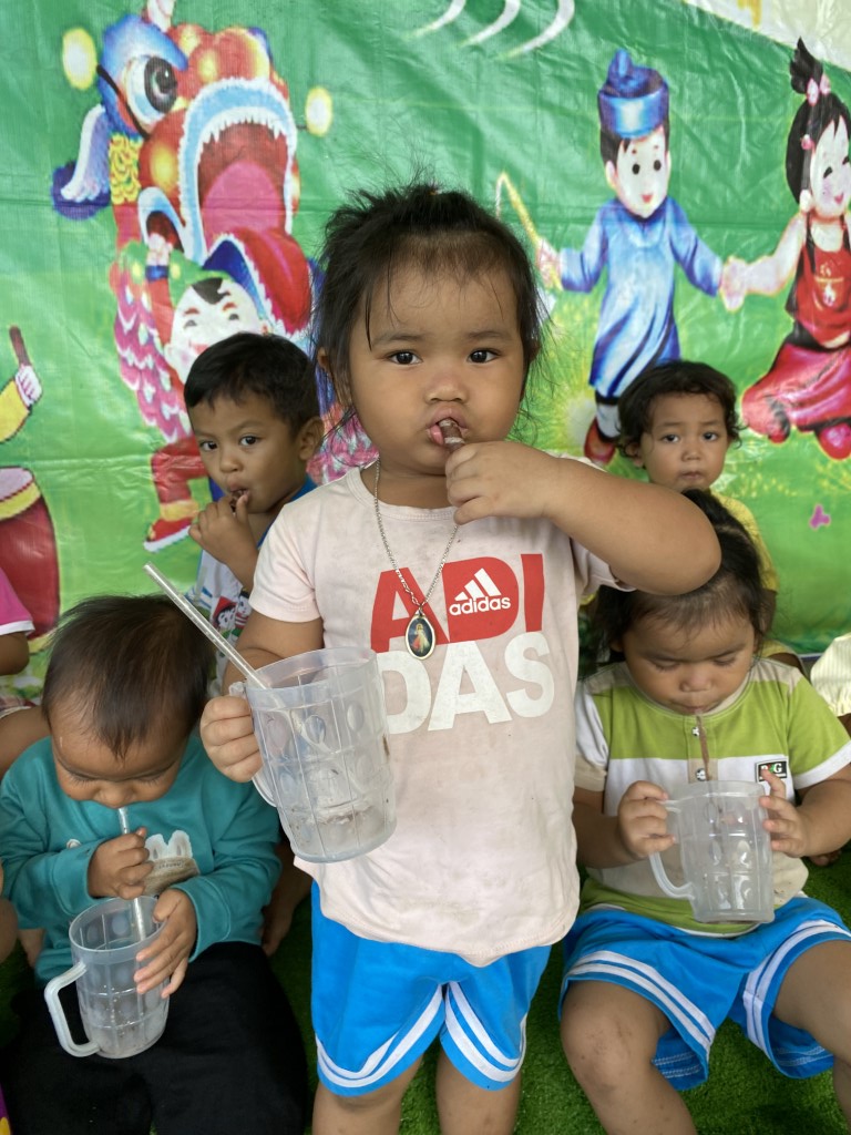 This month’s delivery was packed with necessities, including: storage bins, sausages, soup, seasonings, cooking oil, yogurt, milk, cleaning products, and eggs. For a fun surprise, we whipped up some chocolate milk and cookies for all the children. Their joyful reactions made it all worthwhile!