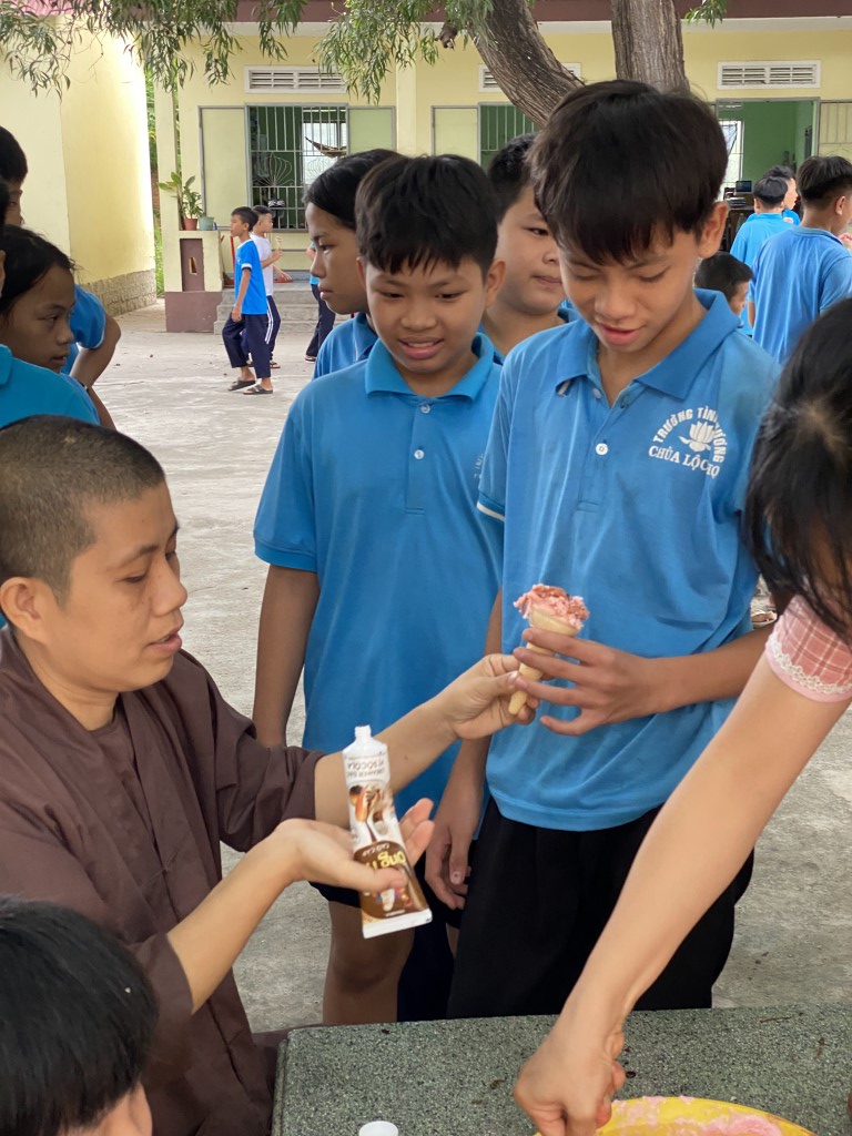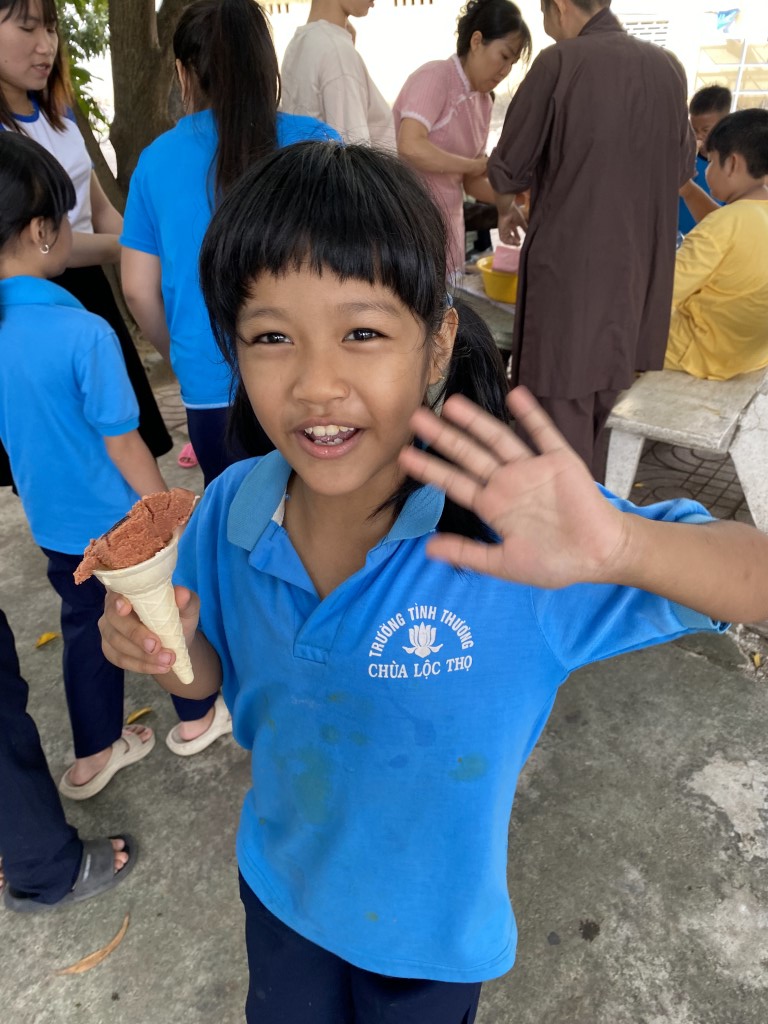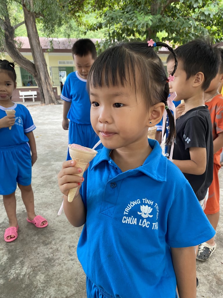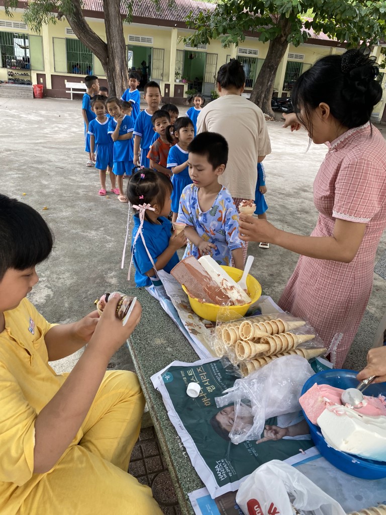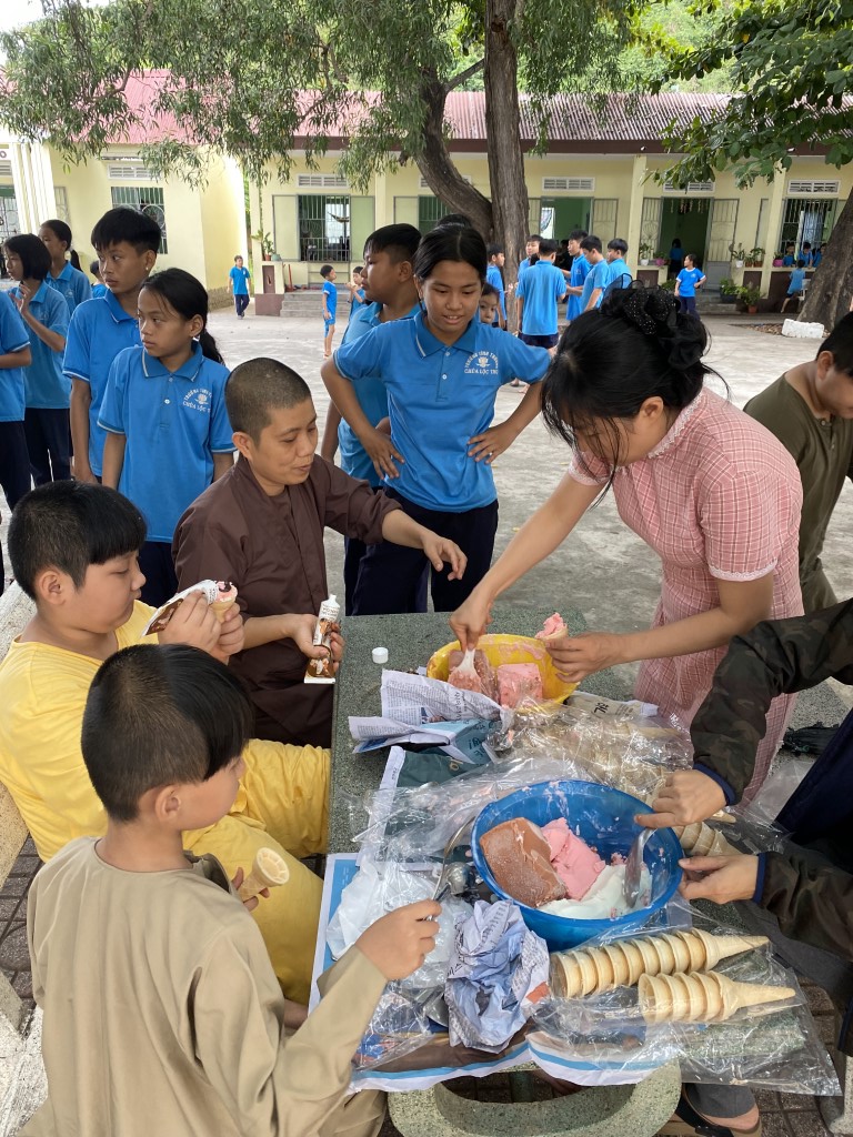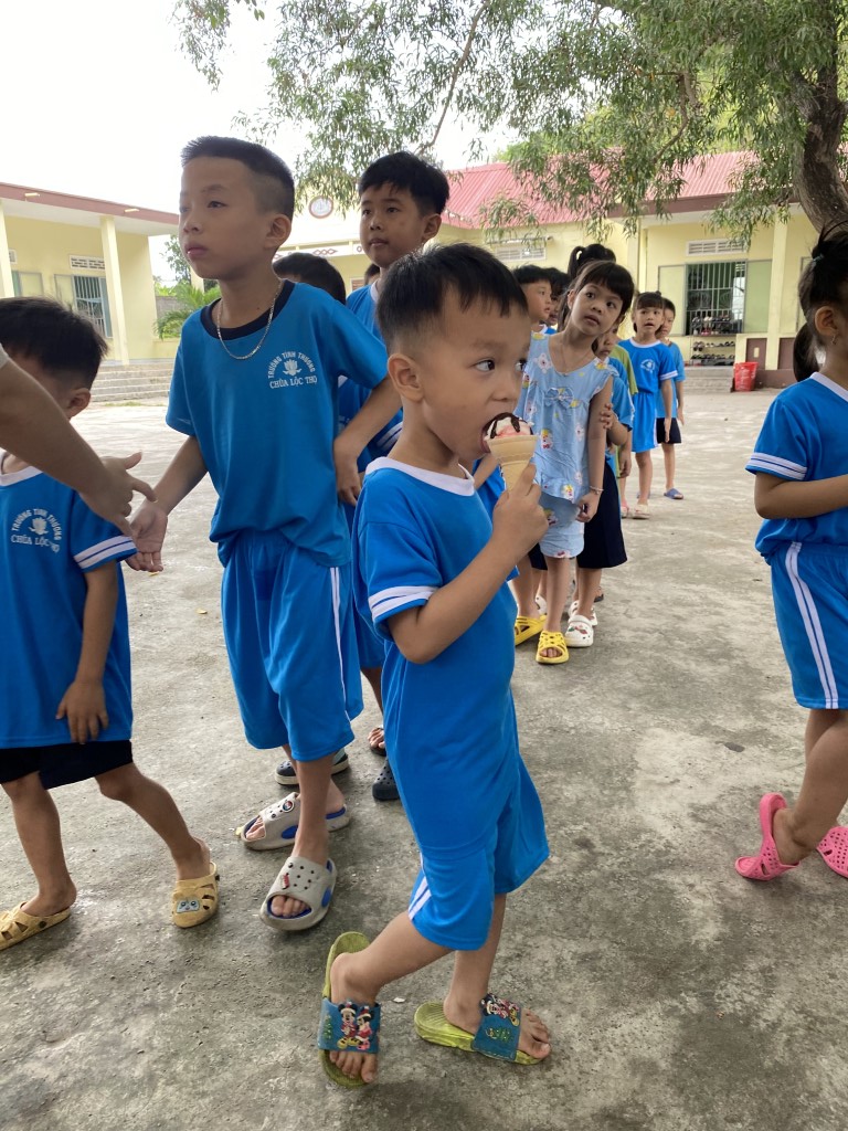 In July 2025, we had the pleasure of hosting an ice cream party at the Loc Tho Charity School, bringing both essential supplies and a special treat to the children. We worked closely with the school’s caretakers to organize the delivery of much-needed provisions for the month, along with a fun surprise.