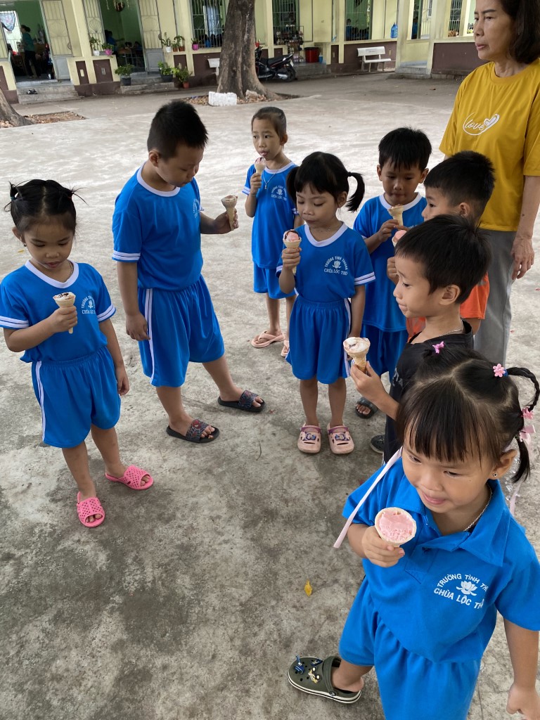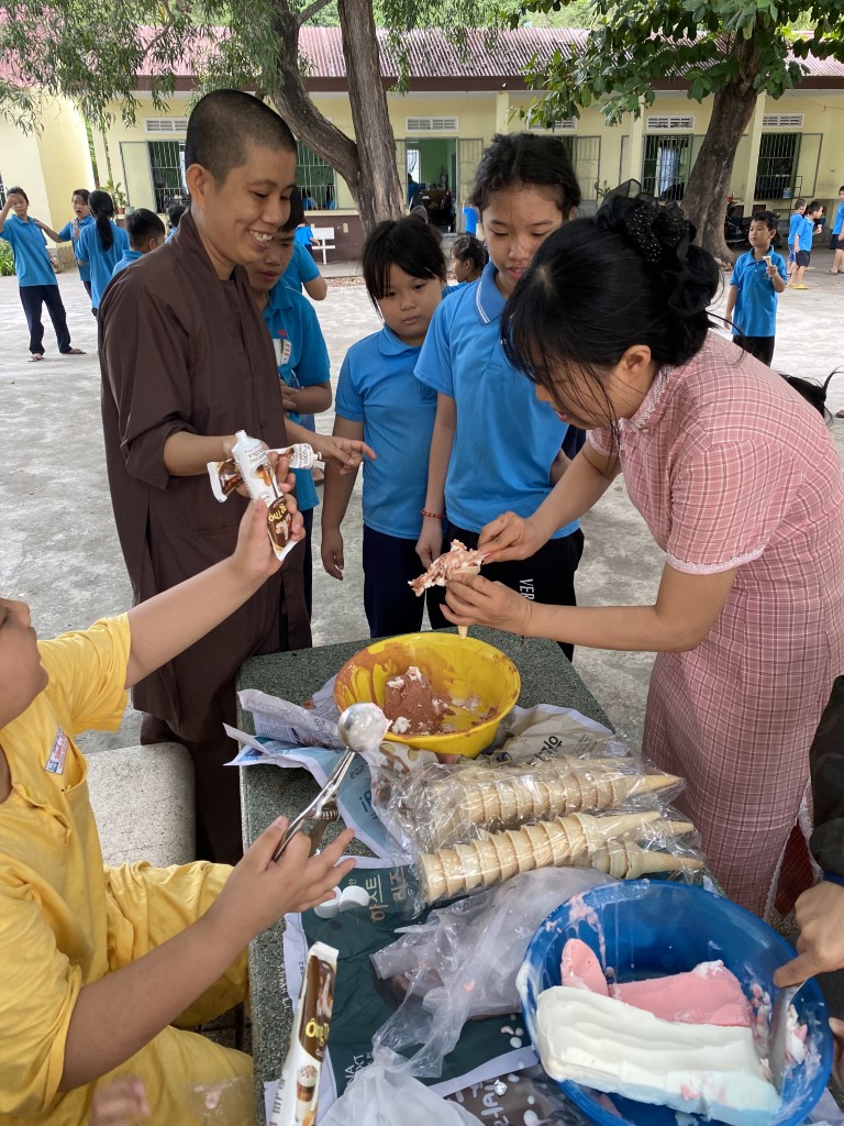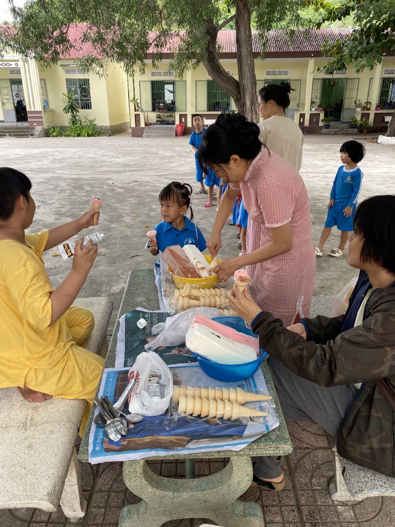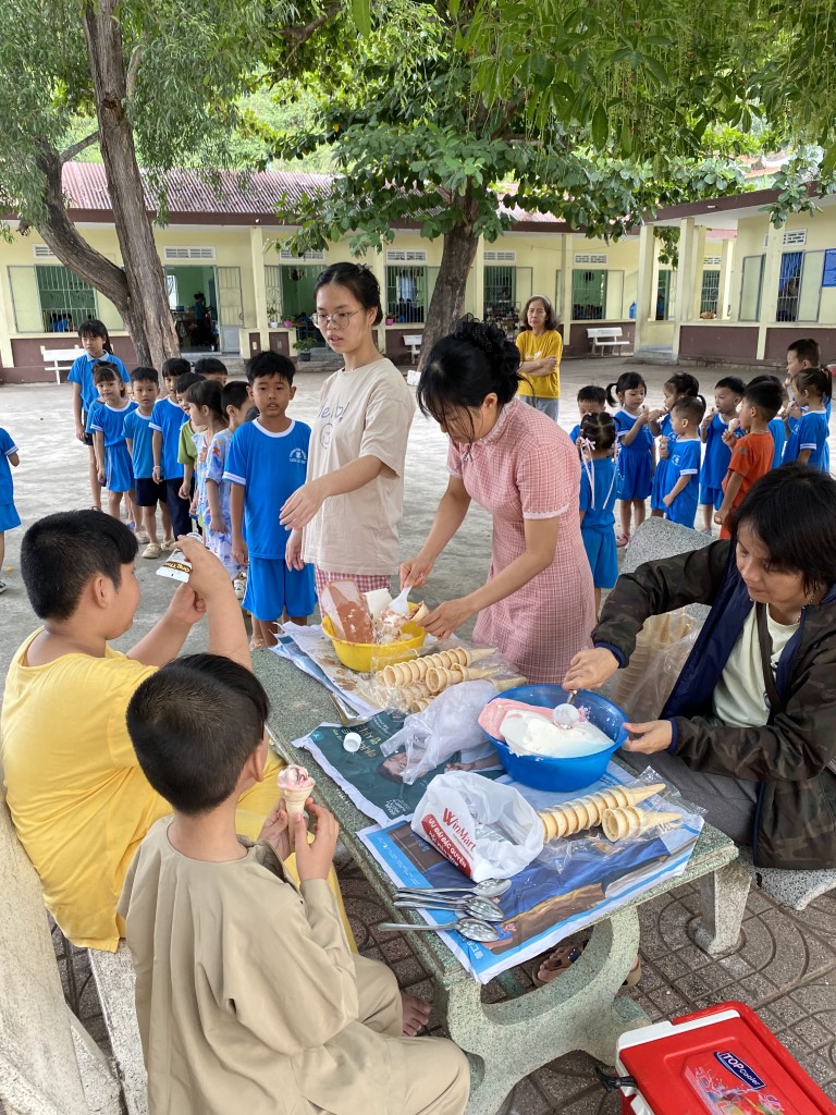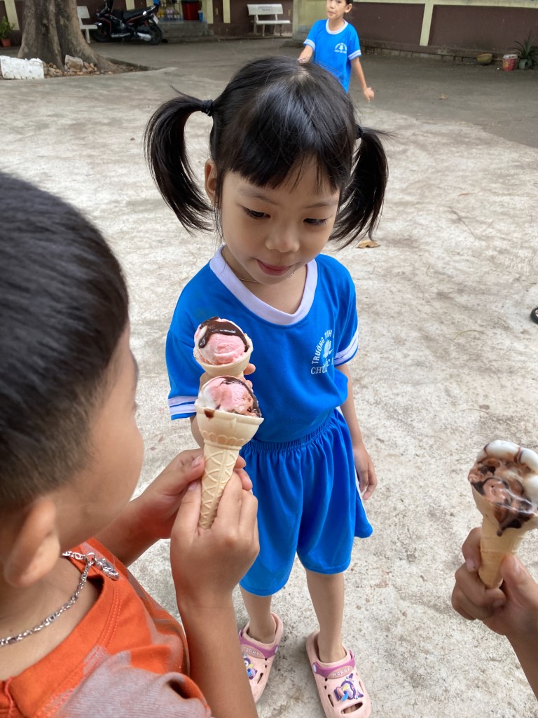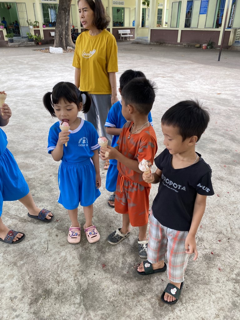 In July 2025, we had the pleasure of hosting an ice cream party at the Loc Tho Charity School, bringing both essential supplies and a special treat to the children. We worked closely with the school’s caretakers to organize the delivery of much-needed provisions for the month, along with a fun surprise.