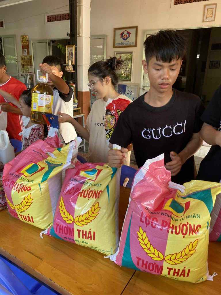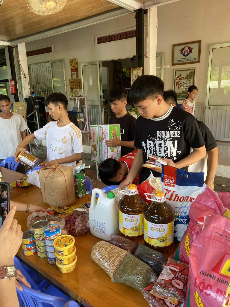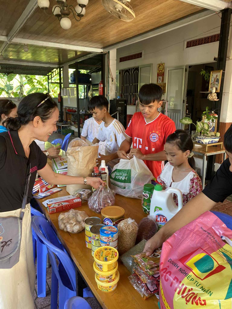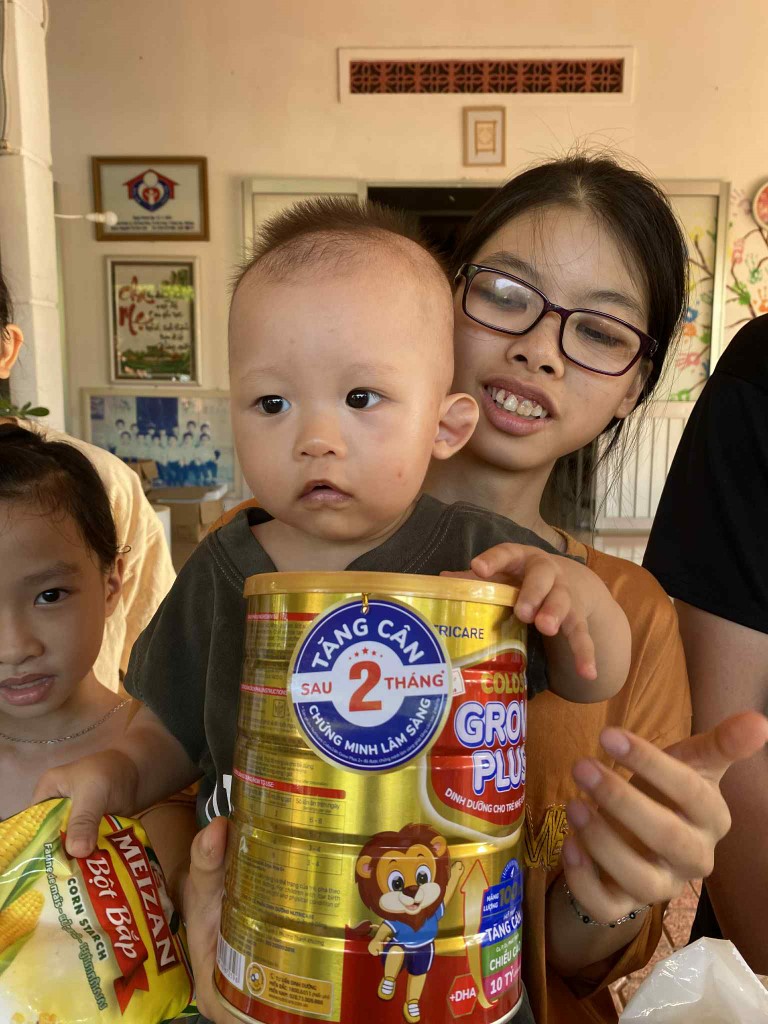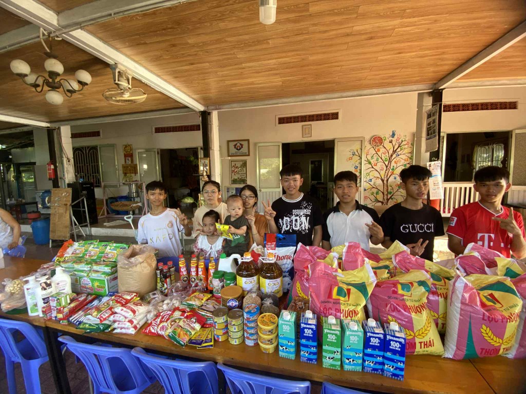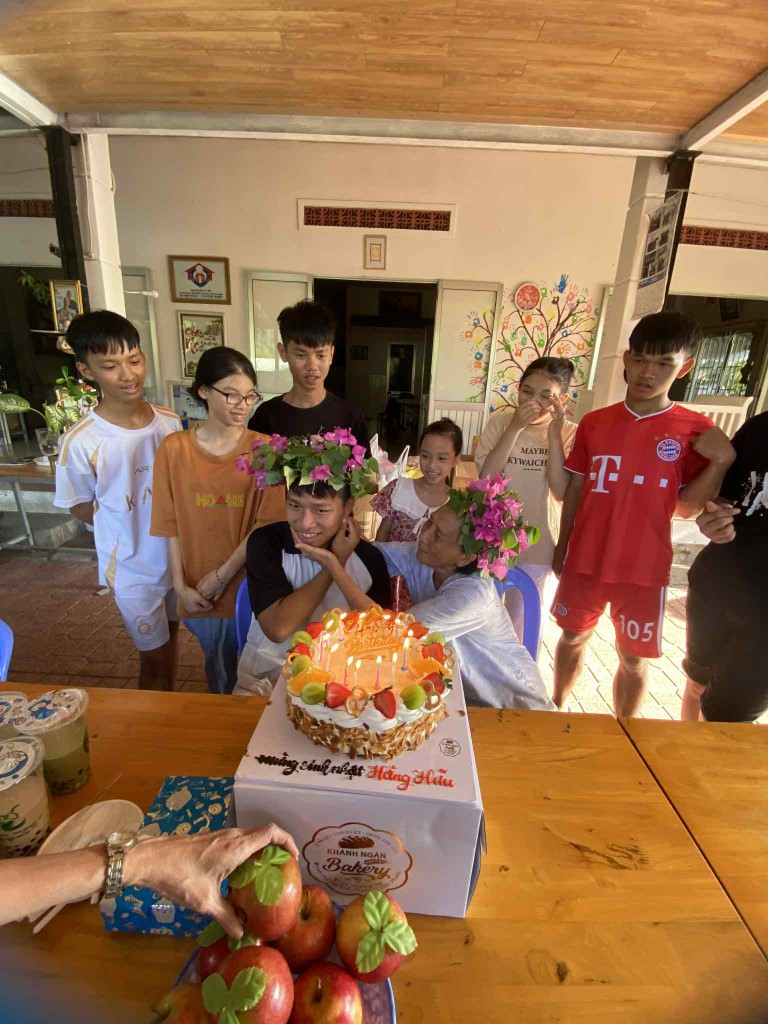 In June 2025, our team made its monthly visit to the Thien Tam Orphanage, bringing not only essential supplies but also a special birthday surprise! The caretakers had provided us with a comprehensive list of their needs, and our volunteers purchased all the requested items at local markets before our visit. We also learned that one of the children had a birthday, so we made sure to bring a cake and presents for everyone to share in the celebration.