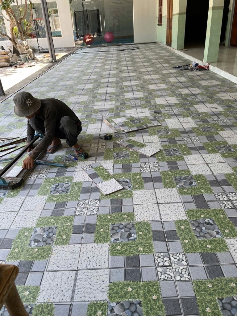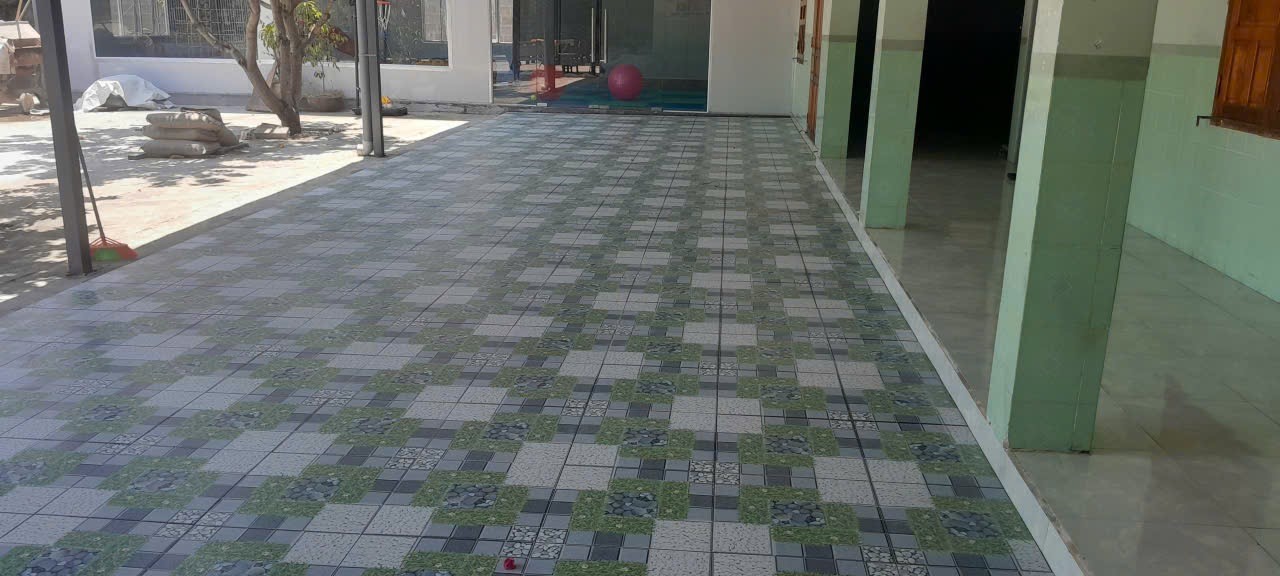 Prior to the project, we consulted with the caretakers to identify the home’s most pressing needs. Their top priority was the front courtyard, which suffered from badly cracked concrete that they frequently had to hide. They dreamed of a beautiful tiled patio where the children could safely spend time. Additionally, several doors required repair, along with various other maintenance tasks throughout the facility.