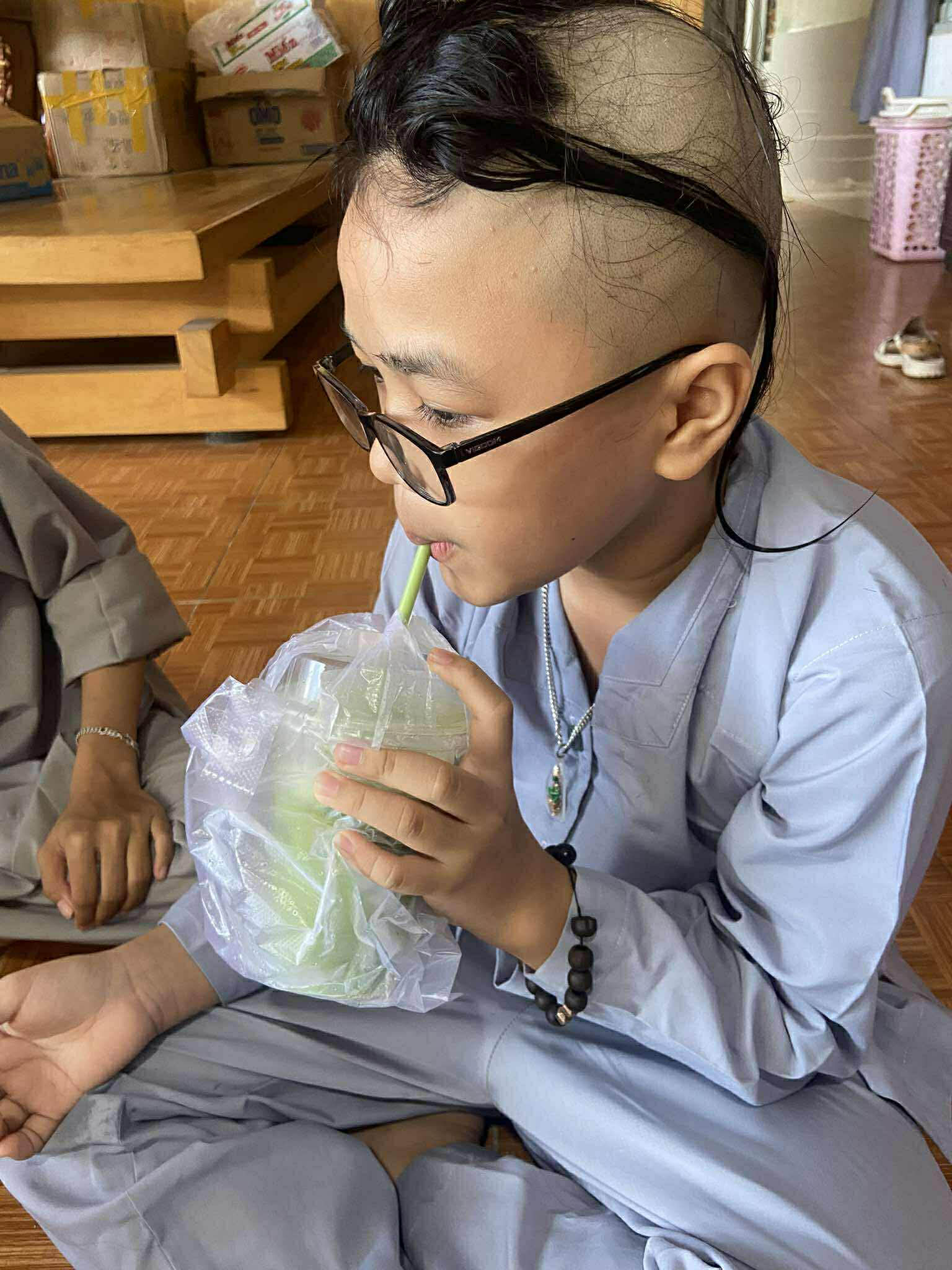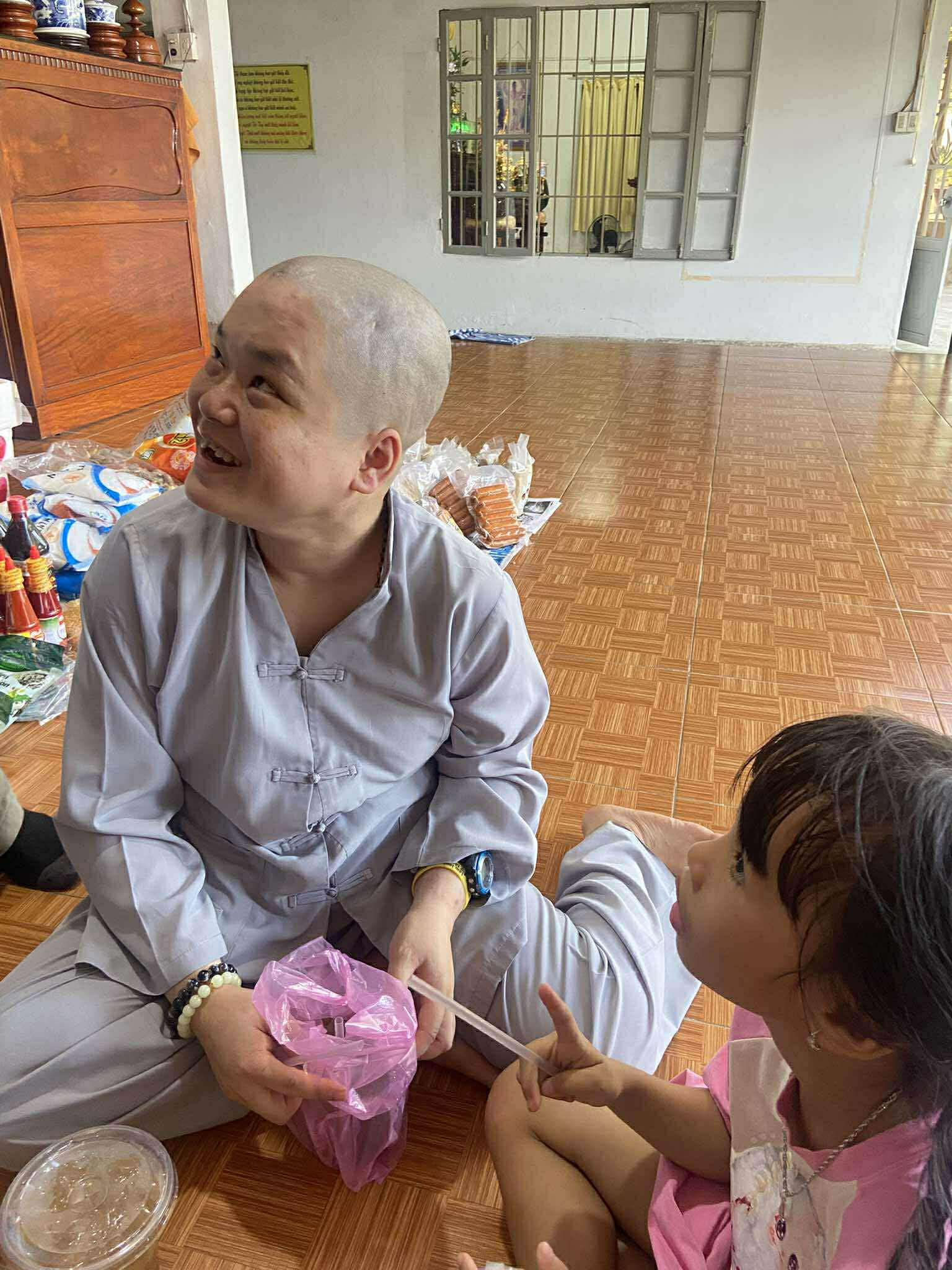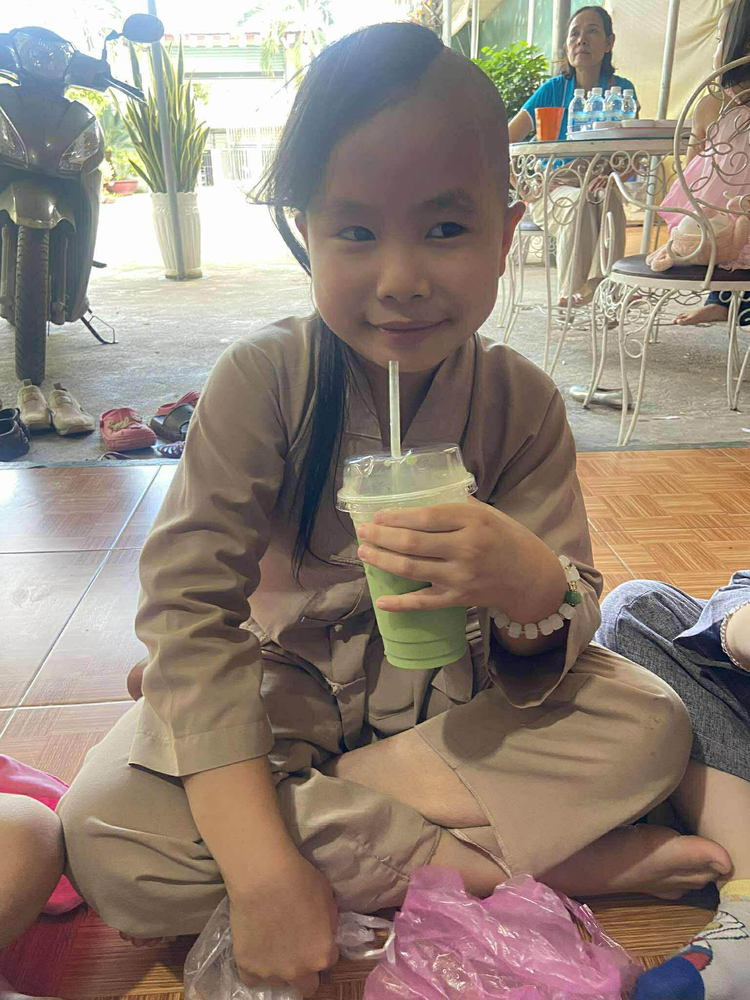 To make the visit extra fun, our volunteers brought boba tea drinks for all the children! Everyone sat in a circle on the floor, happily enjoying their treat—a great moment of simple joy.