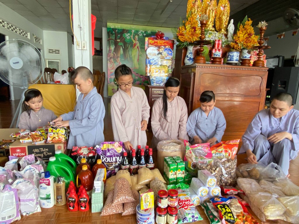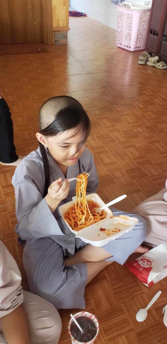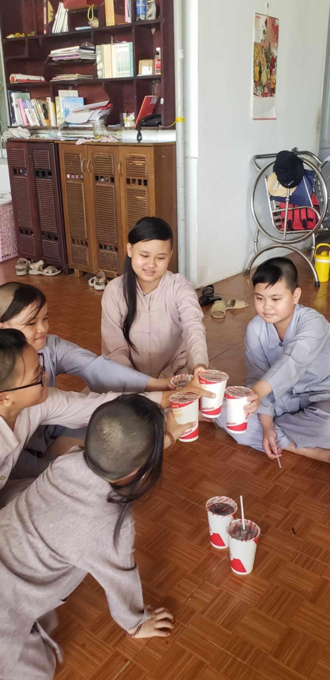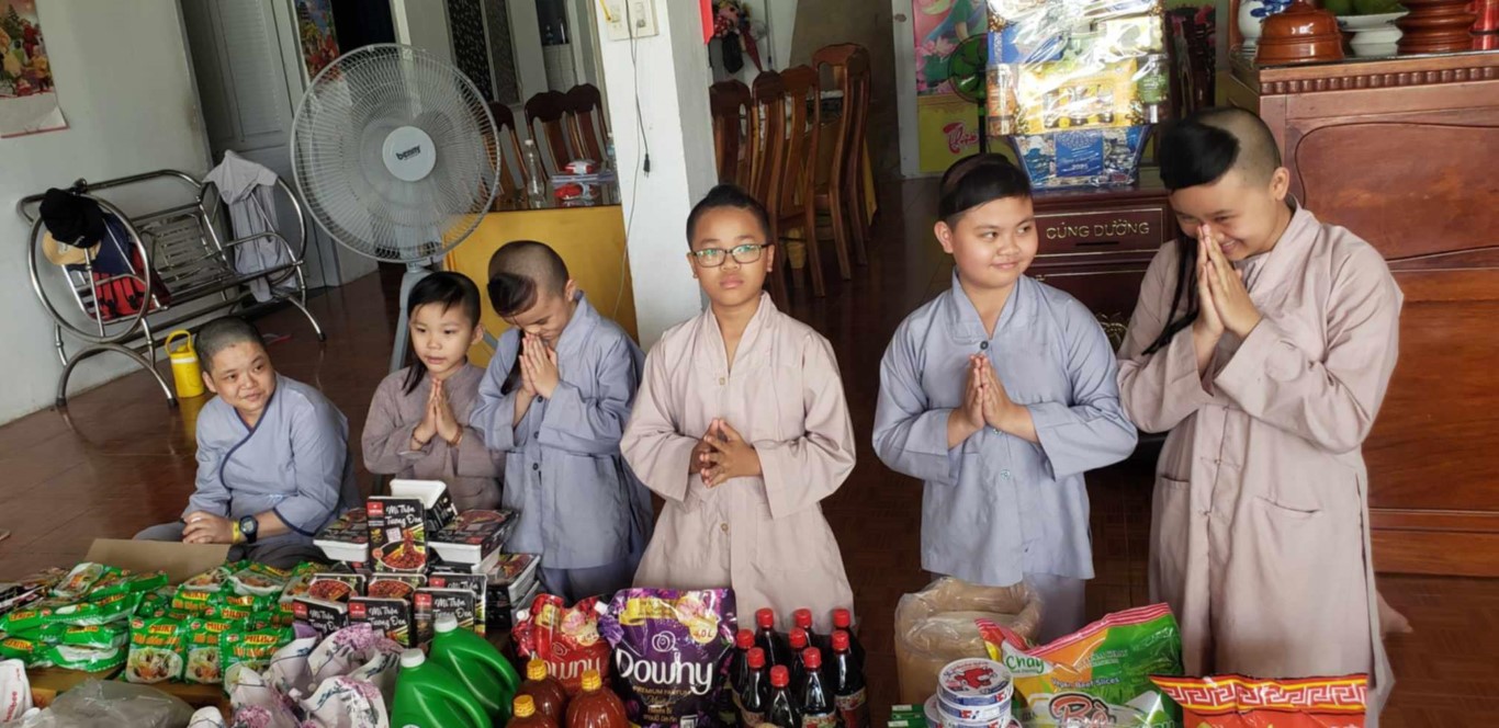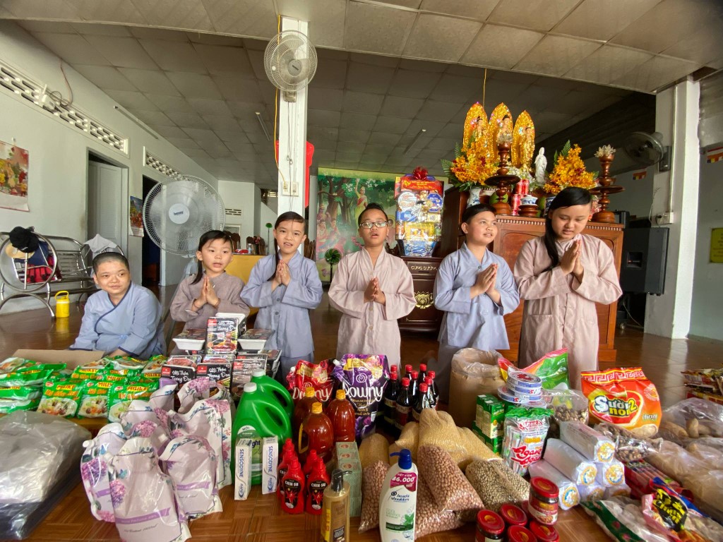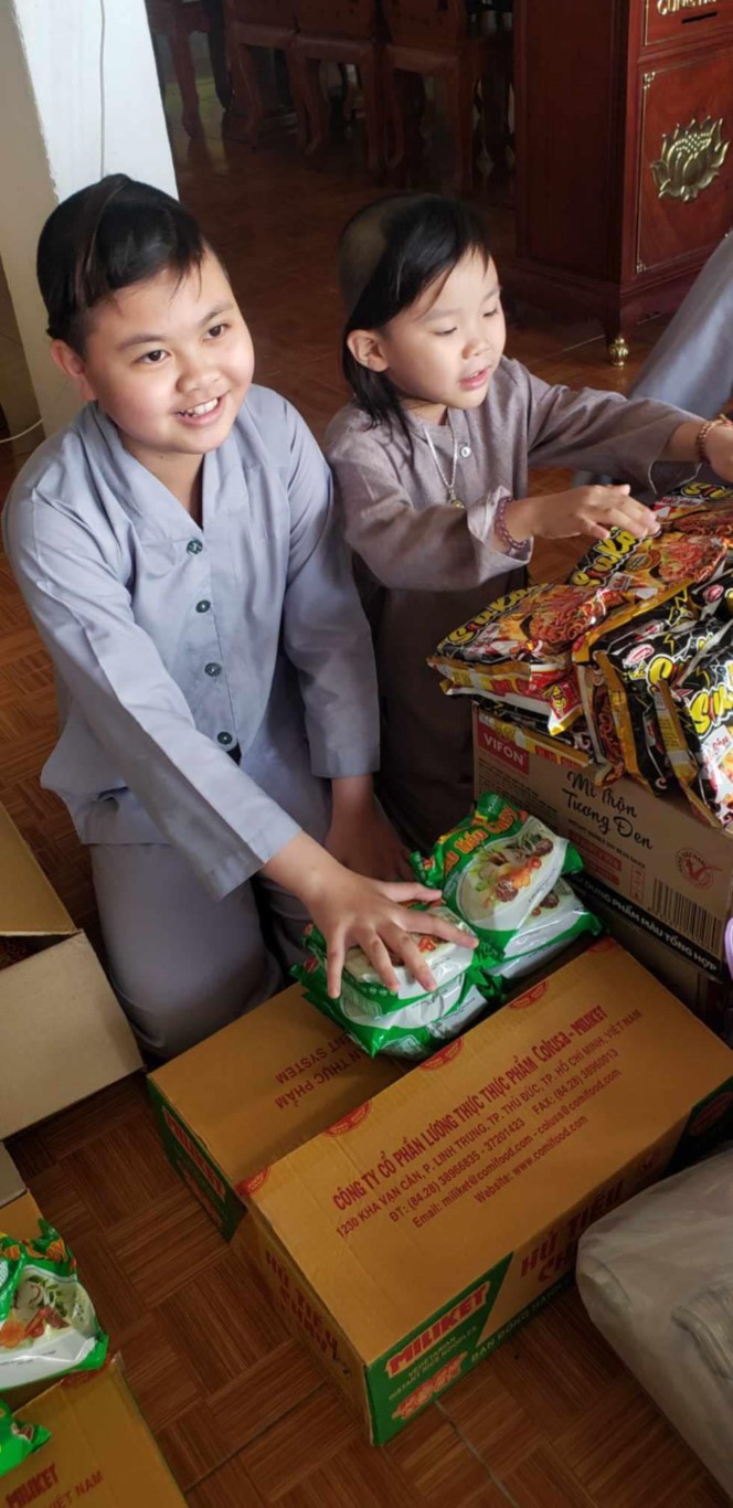This month, we brought fresh vegetables, packages of noodles, varieties of beans, milk, tapioca flour, chili sauce, vanilla, jello, cheese, fish sauce, sugar, tofu sheets, mushrooms, varieties of vegan meats including pork, beef, sausages, and chicken, fabric softener, dish soap, tiger balm, toothpaste, shampoo, trash cans, and laundry detergent.