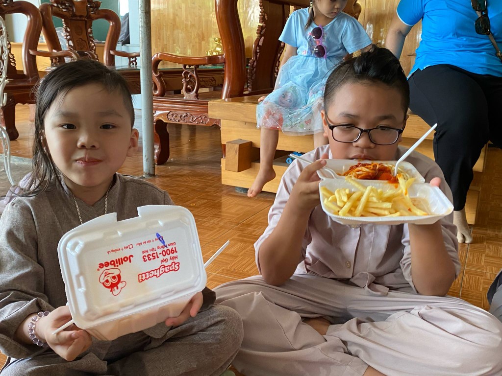 The history of the Song Lo Orphanage’s beginnings is heartwarming. As the story goes, a Buddhist monk was traveling in the countryside when he encountered a woman who said she could not care for her 2 children. She left the babies with the monk and fled. Not expecting to have 2 babies to care for, the monk made his way to the Song Lo pagoda, and the head nun at the pagoda, Sister Cat, agreed to care for the children. From that point on, orphans have been either brought to the pagoda, or abandoned at their gates. Formed in 2012, the Song Lo Orphanage cares for a small group of young children. Located adjacent the Son Lo pagoda, it’s a small facility deep in the countryside west of Nha Trang.