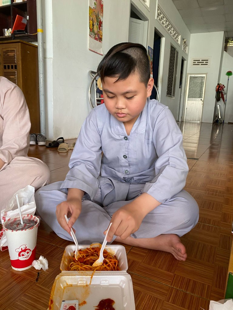 In May 2025 we made our regular visit to the Song Lo Orphanage with food and supplies for the month. After speaking with the coordinators about their current needs, our team of volunteers bought everything on their shopping list, loaded up a van, and drove out to the orphanage. When we arrived, the children helped stack all the supplies in the main common room.