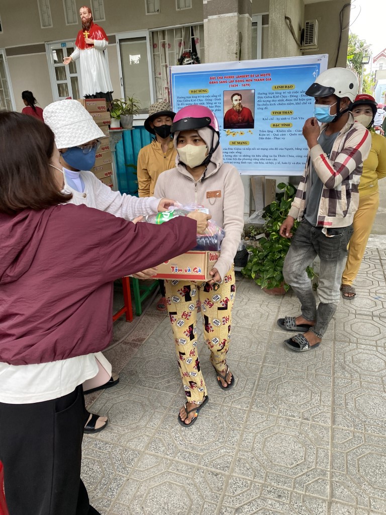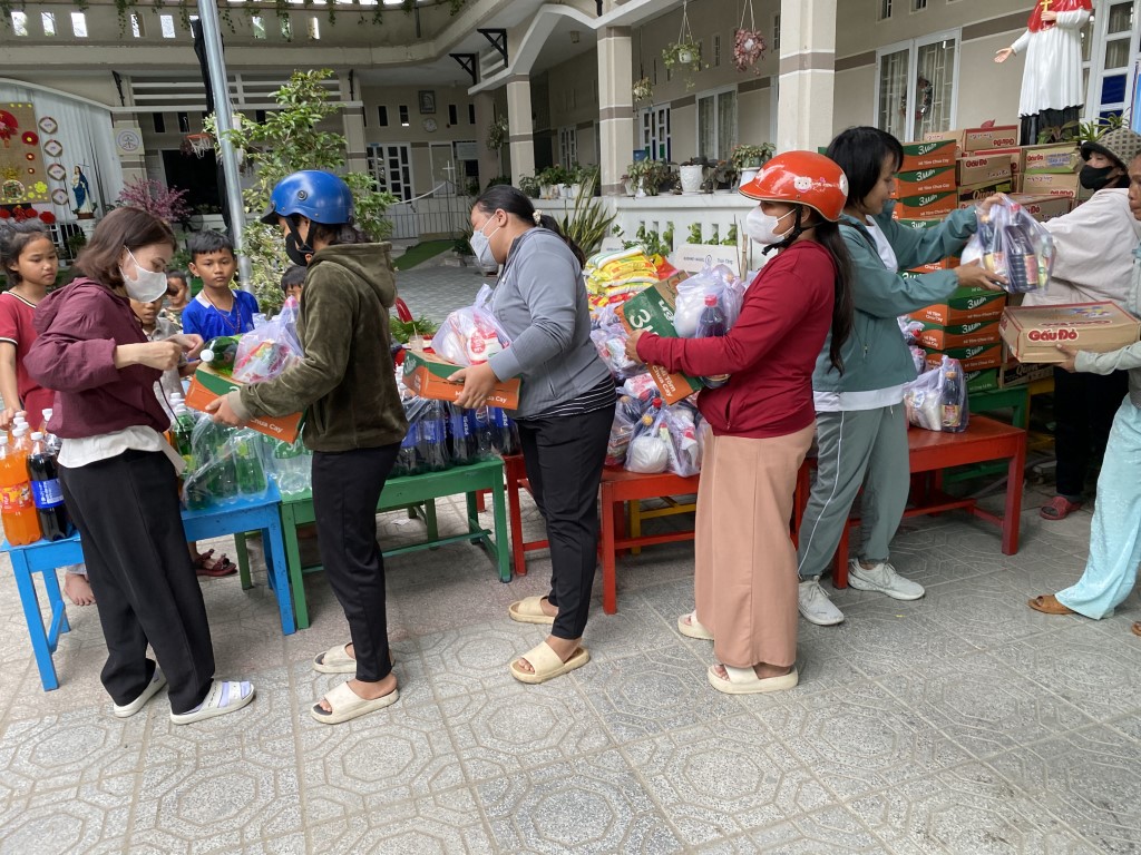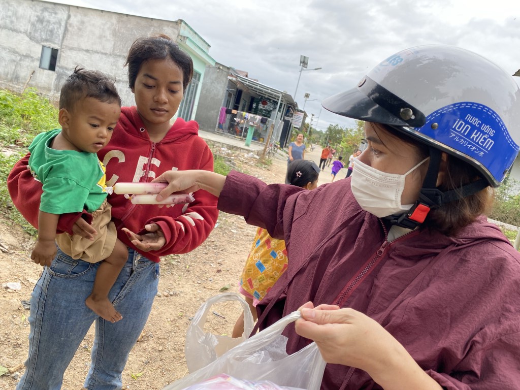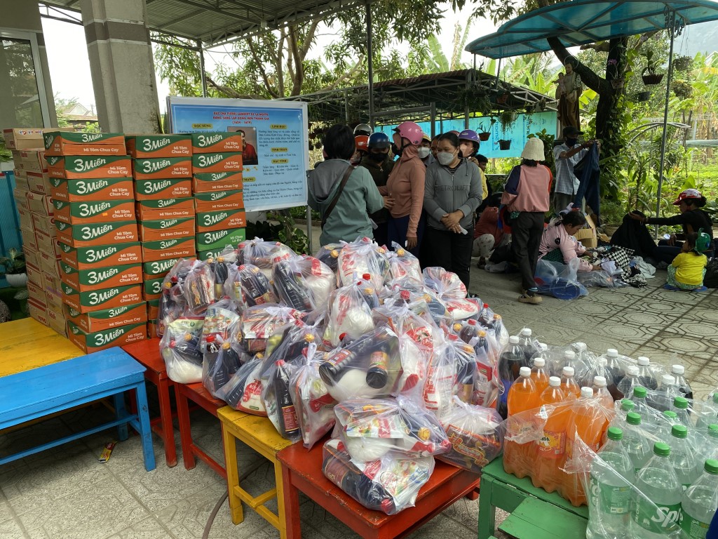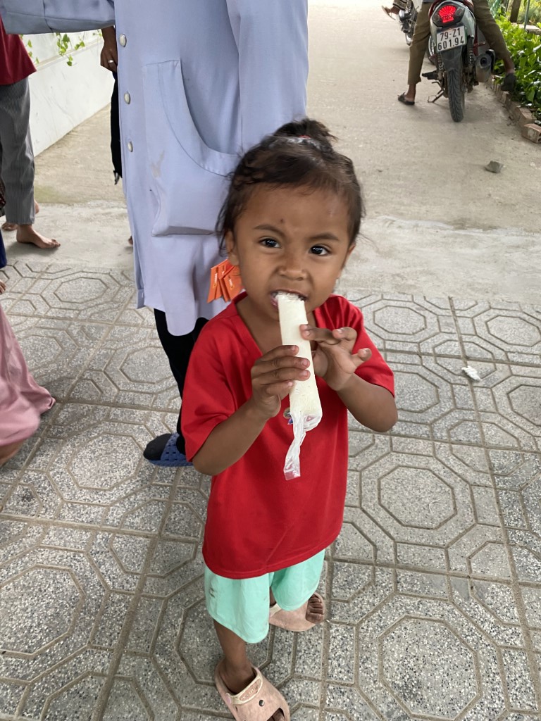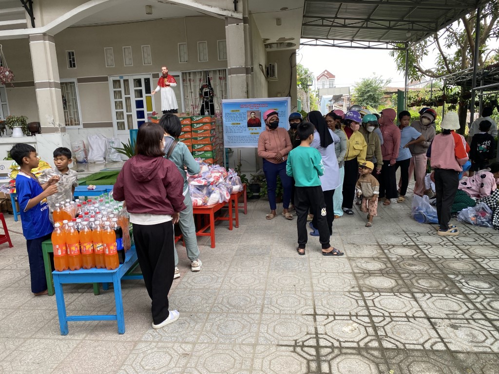 This year, they arranged to have 85 care packages given to families in Cam Lam, a rural community to the south of Nha Trang. Each care package included a bag of rice, a box of noodles, seasonings, soy sauce, fish sauce, yogurt, sugar, soda, and Tet sweets. They also brought lots of popsicles to hand out to children in the neighborhood.
