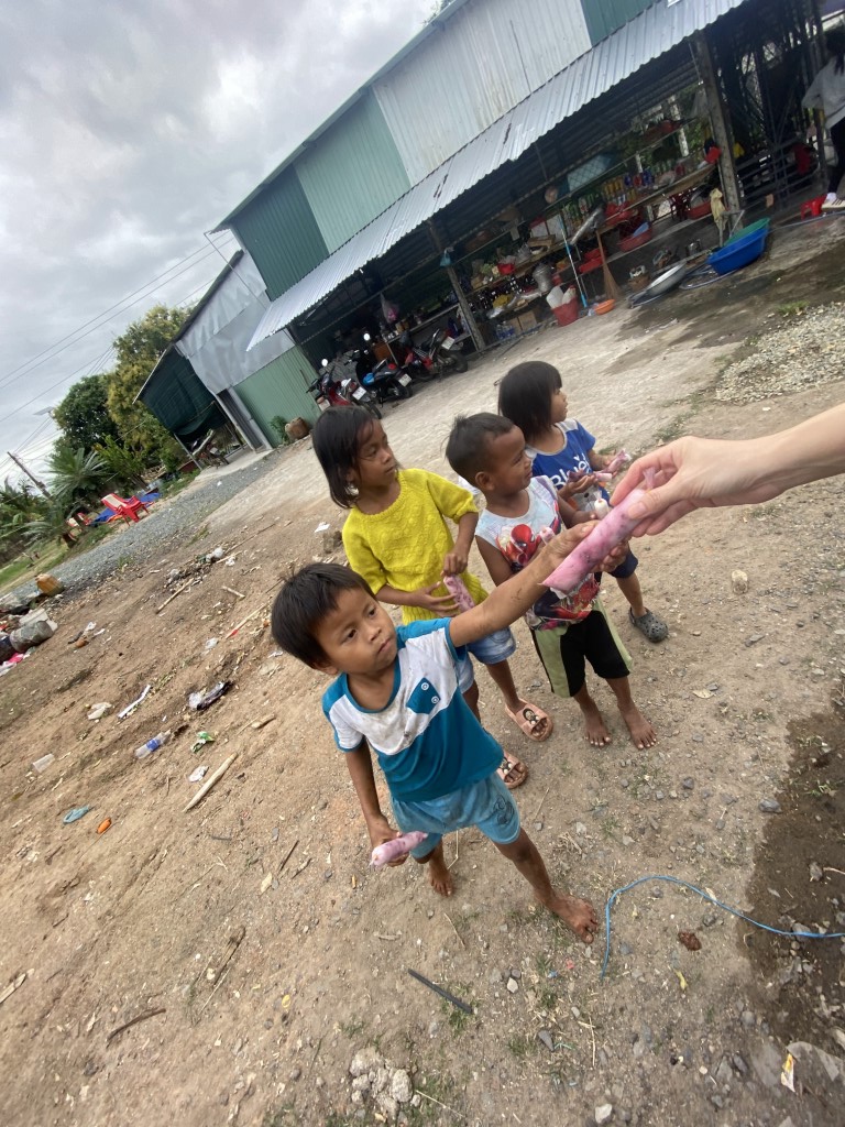 The team set up a base of operations and arranged for a representative from each family to come claim their care package. There were so many smiles! Afterwards, our team rode their motorbikes around the neighborhood, bringing gifts to families and handing out popsicles to smiling children. It was a wonderful day!