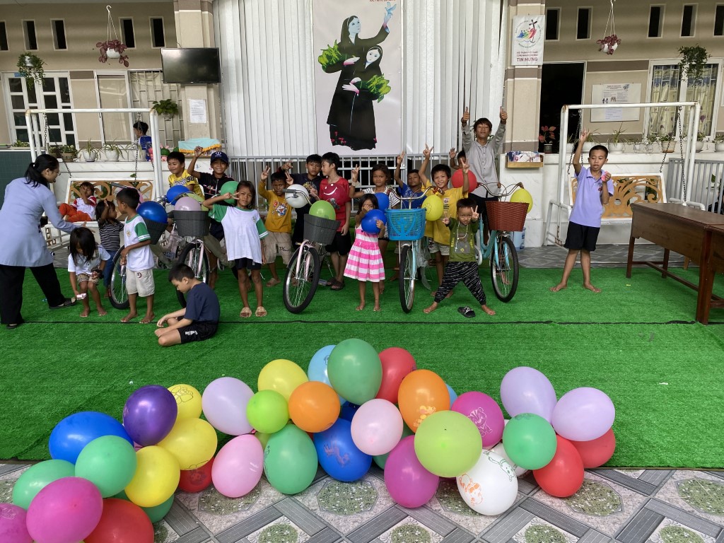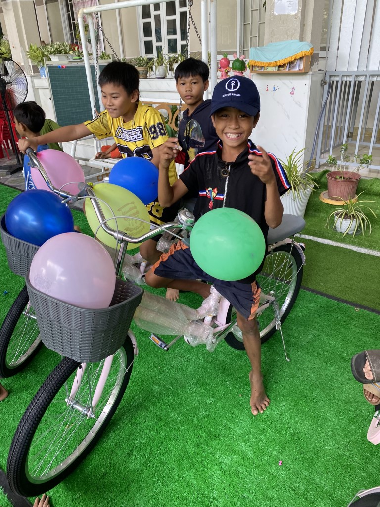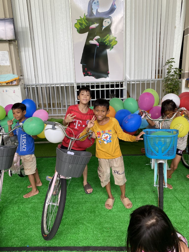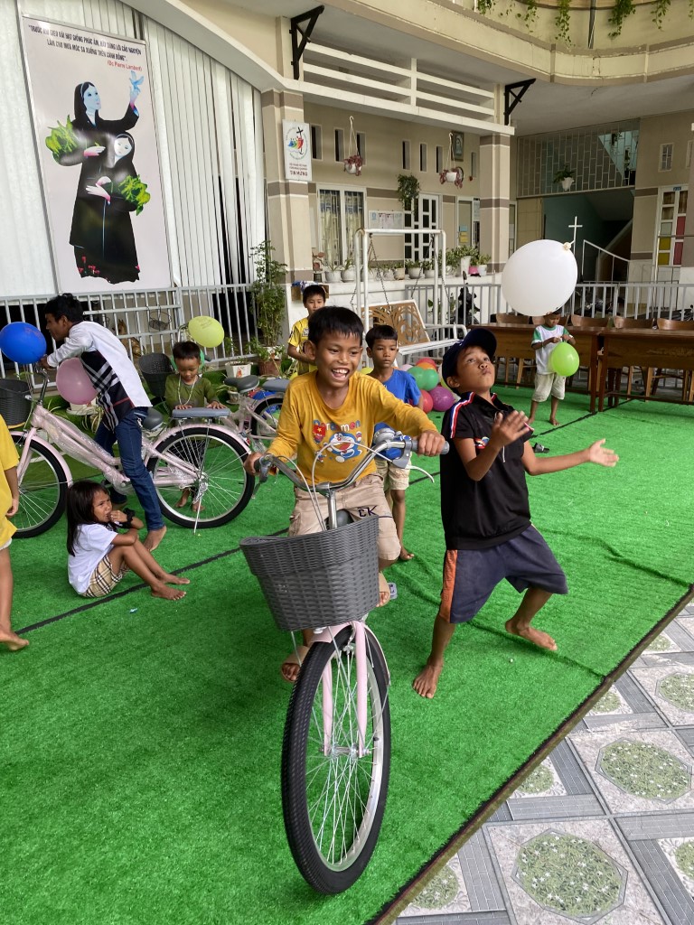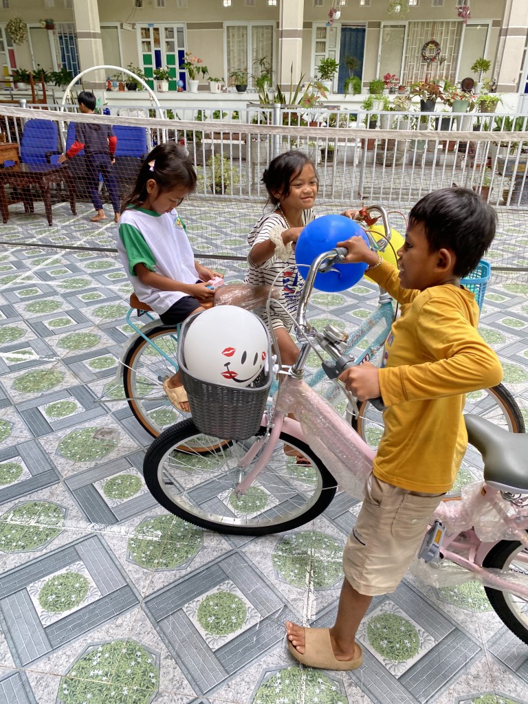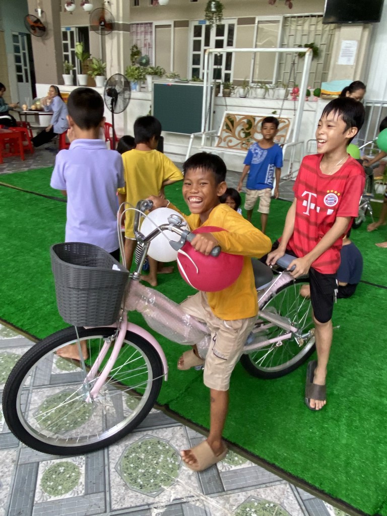 In September 2025 we had a great visit to the Hy Vong Home for Disabled Children. After speaking with the caretakers about the home’s current needs, they said they could badly use new bicycles to replace the ones they had. The old ones were worn out and barely usable. The caretakers were so happy when we arranged to bring 5 brand new bicycles on our next visit! This generous gift was made possible through the kindhearted donations from Steven Burger, Amora Dao, and Jef O’Riley.