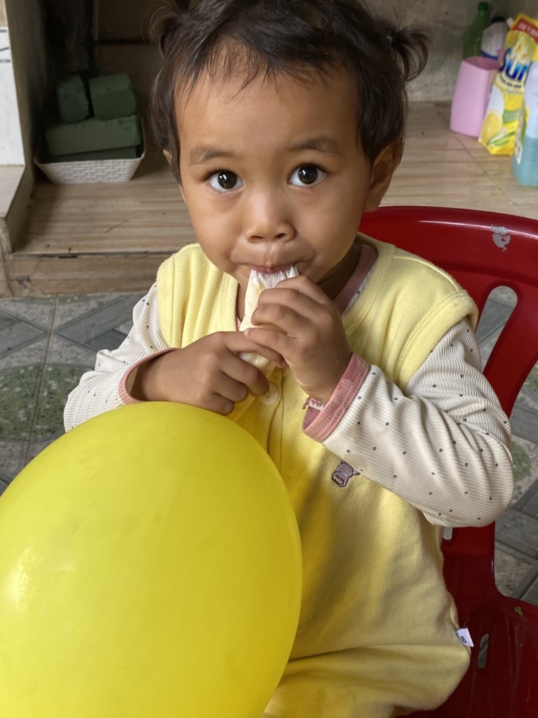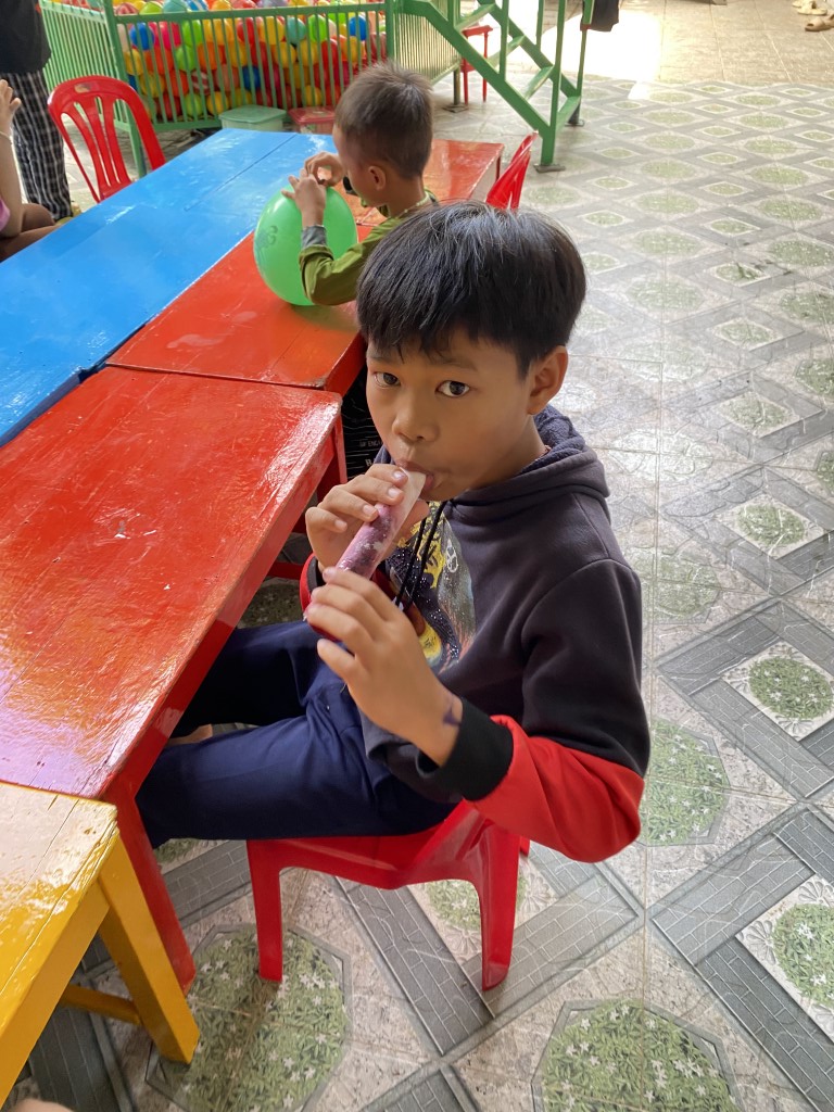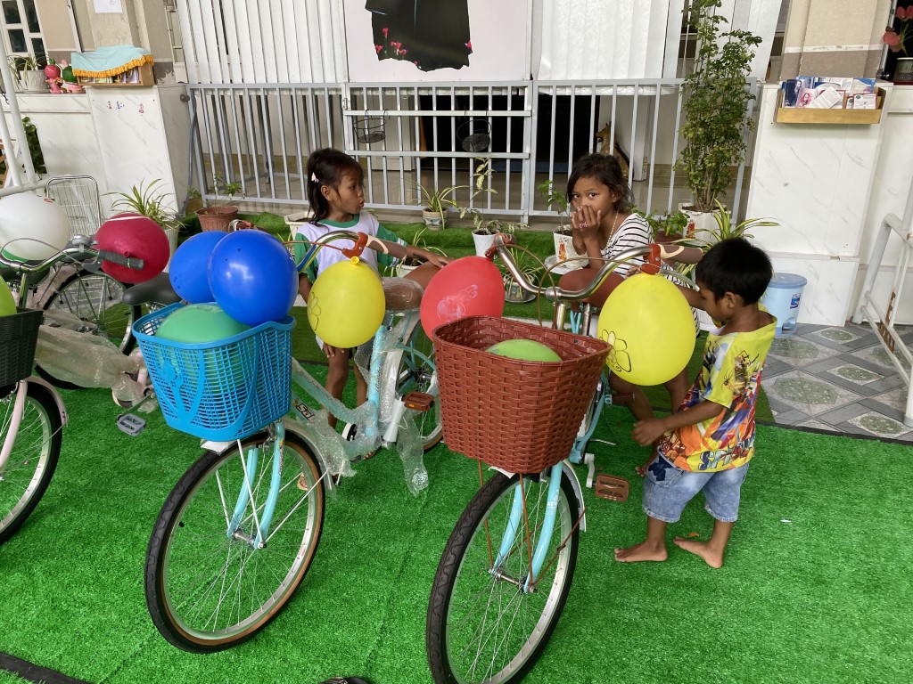 When our team arrived, the children helped decorate the bicycles with balloons, then everyone sat around for a popsicle treat. It was a lovely day!