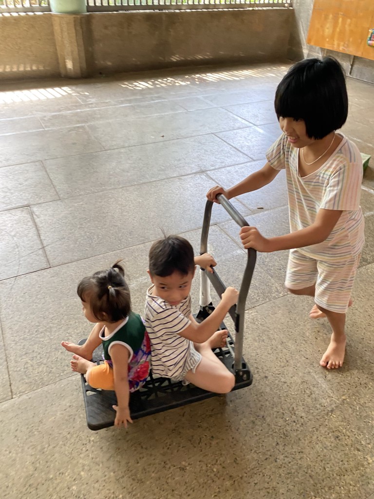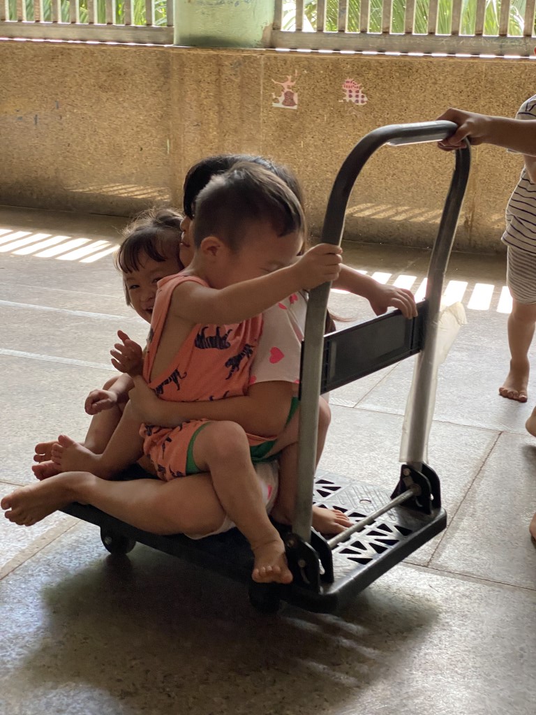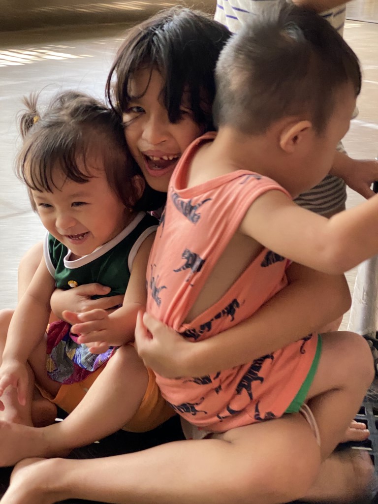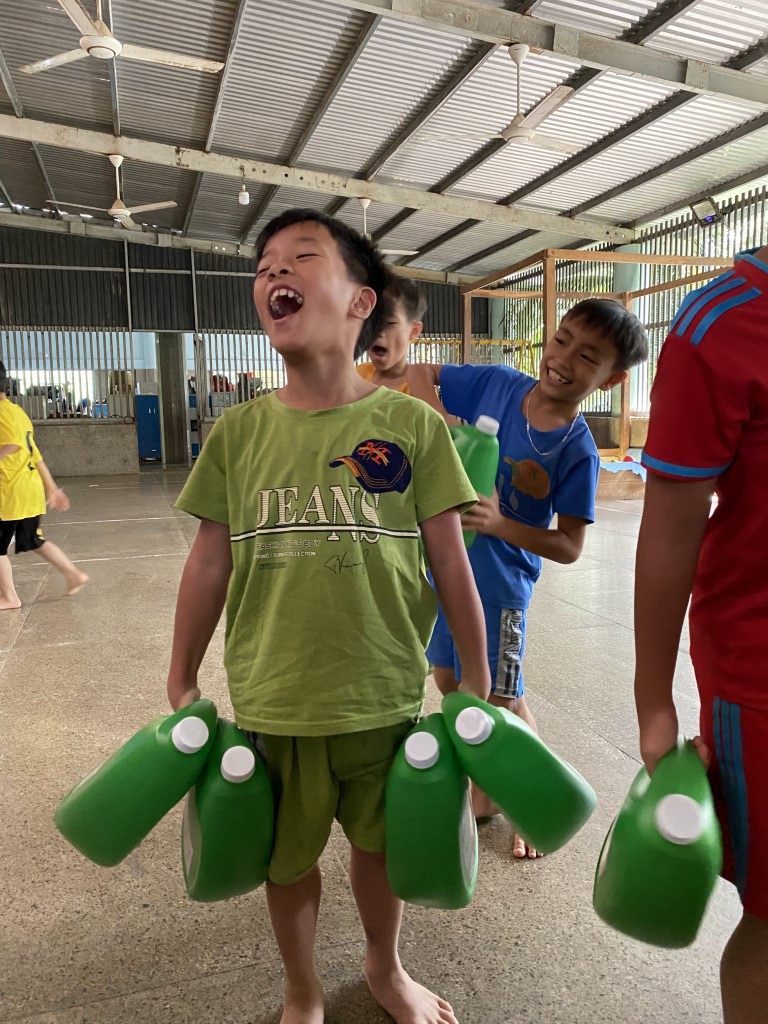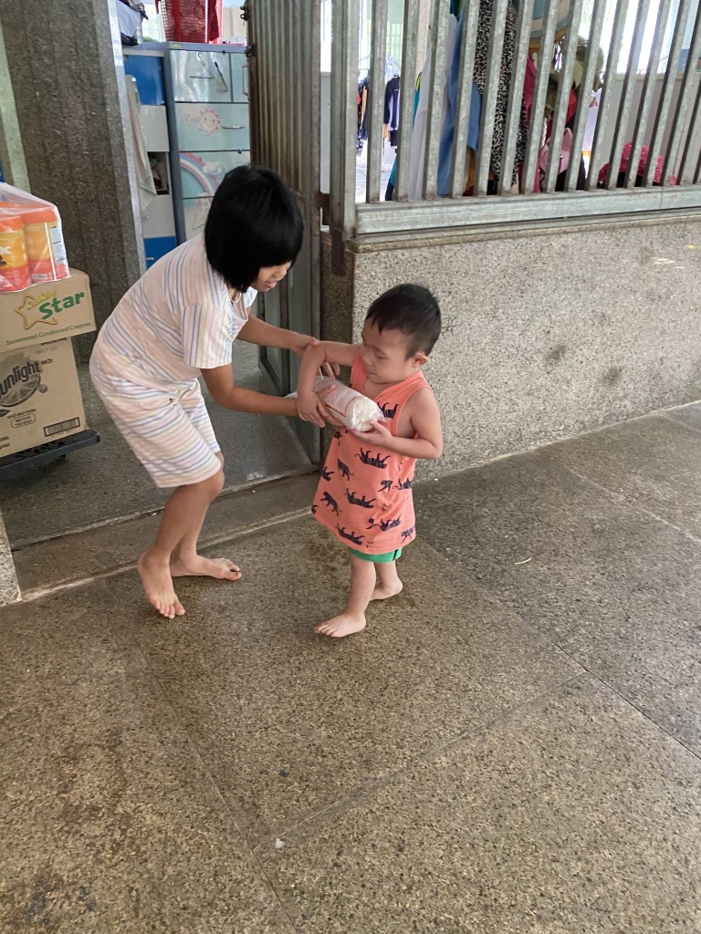 Coordinating closely with the dedicated caretakers, our volunteer team sourced a fresh supply of essential items from local markets. We loaded up the van and were thrilled to be greeted by the children, who were excellent helpers—carrying everything into the common room. Even the rolling cart became a source of cute playtime!