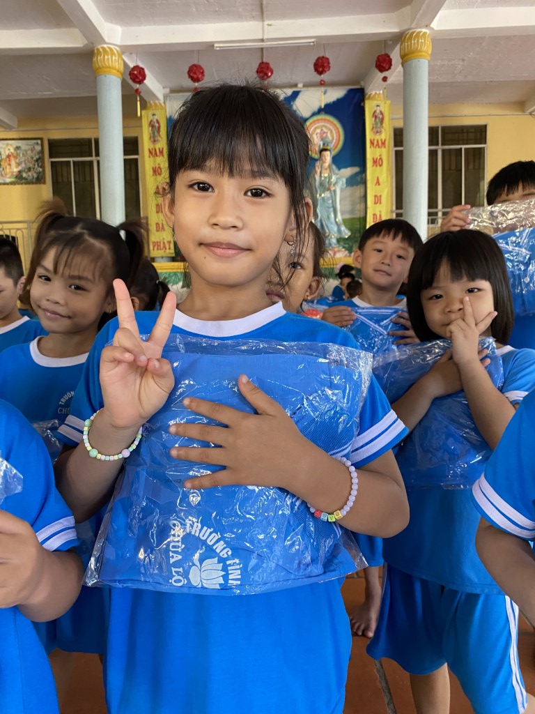 In August 2025 we had a great visit with the children at the Loc Tho Charity School. Every year we endeavor to pay all the school costs to support the children’s education. We worked closely with the teachers and administrators of the school and received a detailed accounting of the upcoming costs. We were so happy to be able to pay for everything! These included new school uniforms, textbooks, school supplies, and all school fees.