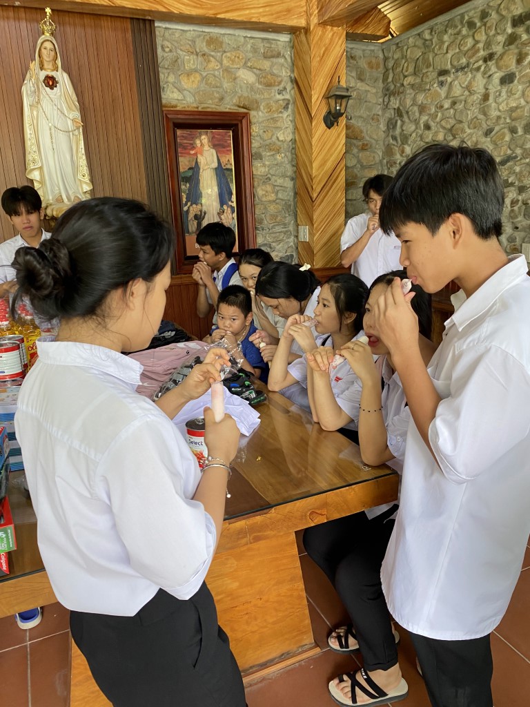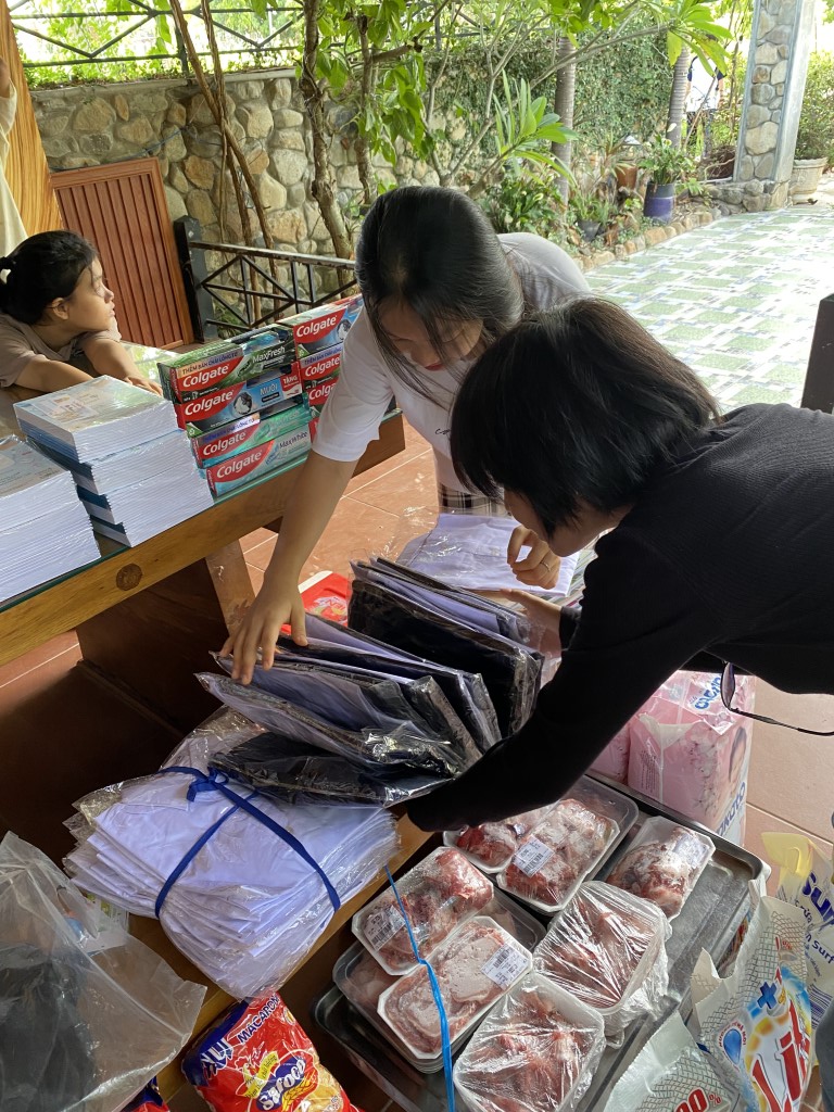 First, our team contacted the orphanage caretakers and made a detailed list of general supplies to bring. These included boxes of noodles, fish sauce, toothpaste, dish soap, pork, cooking oil, canned fish, seasonings, diapers, and laundry detergent.