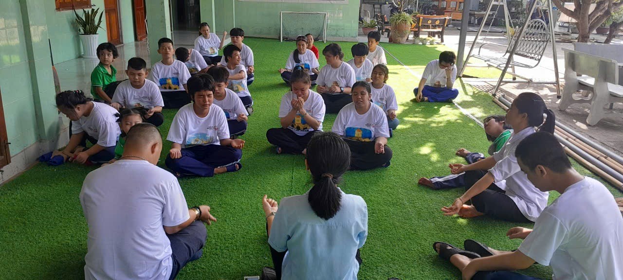 We stacked all the items neatly in the common room. As the children gathered, our team of volunteers handed out snack bags to each child. Some of the children took the badminton sets out to the courtyard and played. Towards the end of our visit, the caretakers showed us some of the meditation exercises the children do. It was a truly lovely and rewarding day!